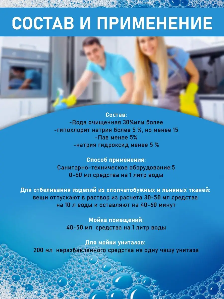 Назначение средства антибактериальное; для отбеливания; для уборки