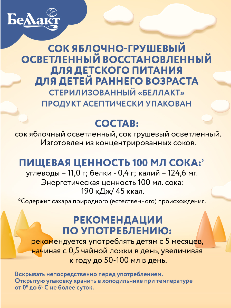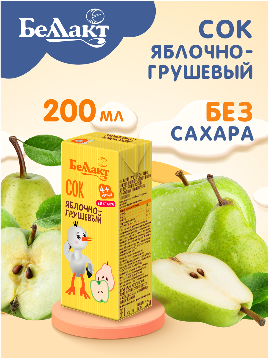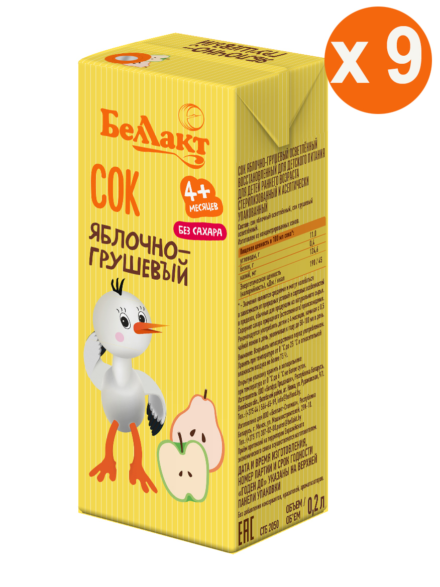 БЕЛЛАКТ Яблочно-грушевый детский маленький натуральный сок 200мл Х 9шт