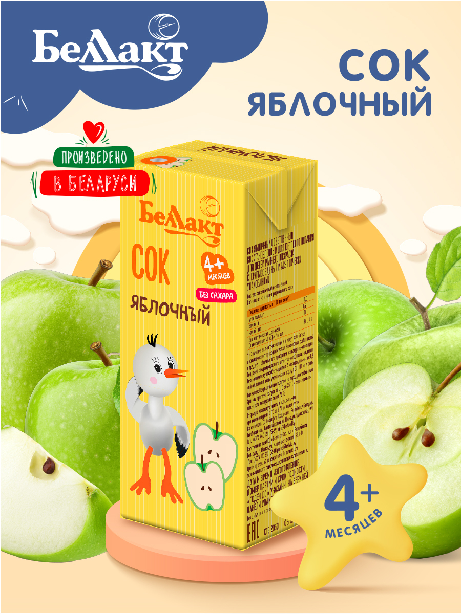 БЕЛЛАКТ Яблочный сок осветленный детский маленький натуральный 200мл Х9 шт