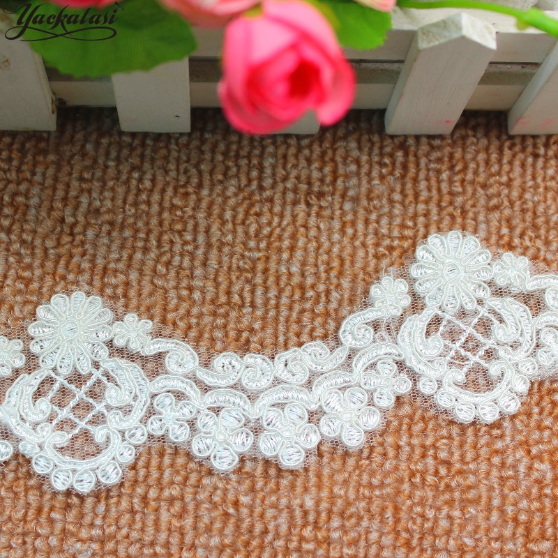 Белые вышитые кружева для свадебного платья, сделай сам, свадебные аппликации, фестоны, цвета слоновой кости, свадебная отделка, 5 см