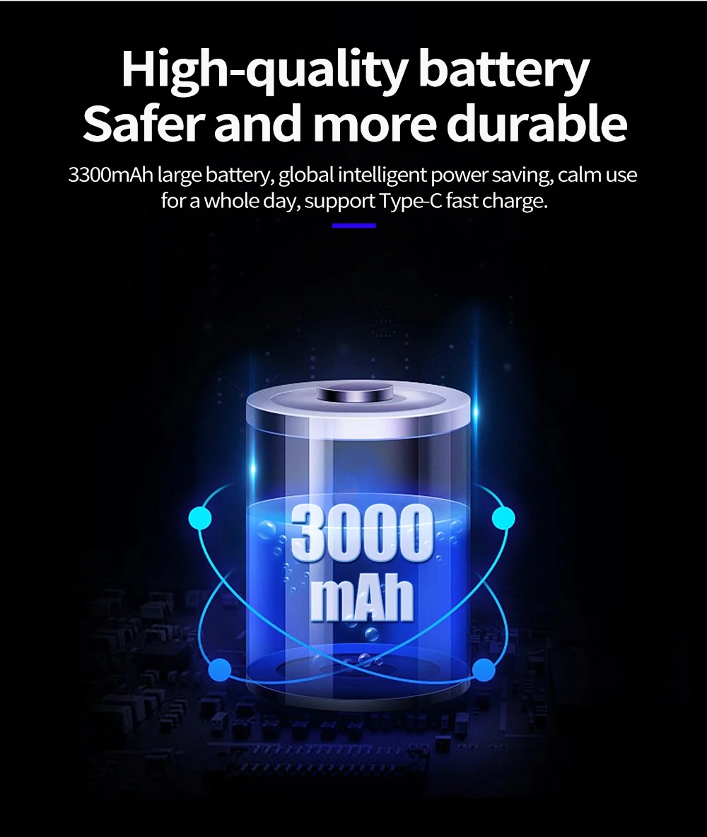 Большая батарея емкостью 3000 мАч, глобальное Интеллектуальное энергосбережение, спокойное использование в течение всего дня, поддержка быстрой зарядки Type-C