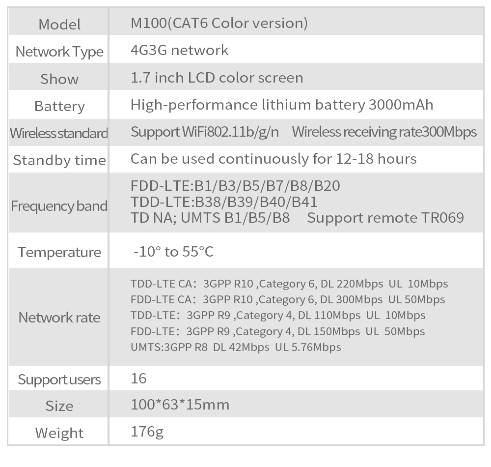 4. Знание о скорости 4G +. 4G + находится между скоростями 4G и 5G, а также называется cat6 LTE, что в два раза быстрее, чем обычный 4G. он обеспечивает скорость загрузки 5 - 20 Мбит/с для пользователей Wi-Fi. Обычным пользователям достаточно спокойно смотреть видео, играть в игры и т. д. Верхняя емкость набора микросхем 4G маршрутизатора составляет 300 МБ, а теоретическая Максимальная скорость базовой станции 4G + также составляет 300 МБ. Однако базовая станция 4G + предоставляет услуги многим пользователям 4G одновременно, вместо того, чтобы предоставлять полную пропускную способность 300M одному пользователю и мощность сигнала 4G, ограничение SIM-карты и окружающая среда также повлияют на скорость сети. Если какой-то невежественный пользователь жаждет максимальной теоретической скорости, сравните скорость телефона (которая дороже, чем маршрутизатор) и любите использовать неточное приложение или программное обеспечение для проверки скорости сети, пожалуйста, не покупайте. Ни один продукт на рынке не будет отвечать таким требованиям. Спасибо.