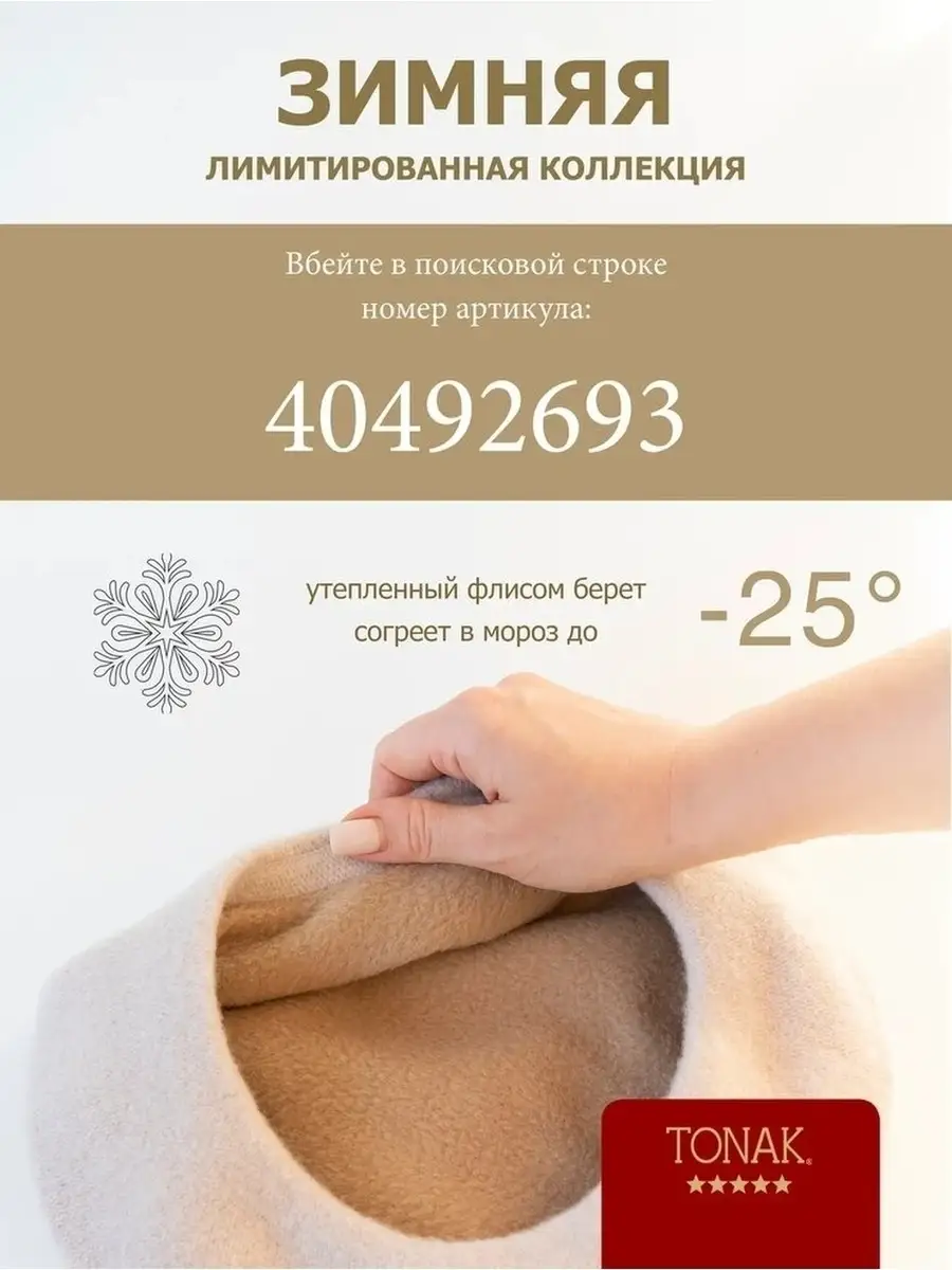 Описание: Женский берет премиального качества на каждый день для твоего идеального образа. Ранняя весна и поздняя осень не балуют теплом, и приходится носить головные уборы. Элегантный берет - лучший вариант на каждый день. Классический мягкий берет подойдёт как подростку, так и взрослой женщине. Французский головной убор можно носить в любое прохладное время года (весна, осень и зима). Берет изготовлен из натуральной шерсти, приятной на ощупь. При долгой носке нет ощущения покалывания - вы чувствуете комфорт, тепло и мягкость! Материал изделия тонкий, но достаточно плотный и износостойкий. Шерстяные волокна сохраняют тепло и пропускают воздух - кожа не потеет и не переохлаждается. Объёмный головной убор превосходно держит форму и сохраняет яркость цвета. Производитель - чешский бренд "Тонак", известный высоким качеством товаров. У нас можно купить красивые береты из коллекции 2023-2024 разных цветов.