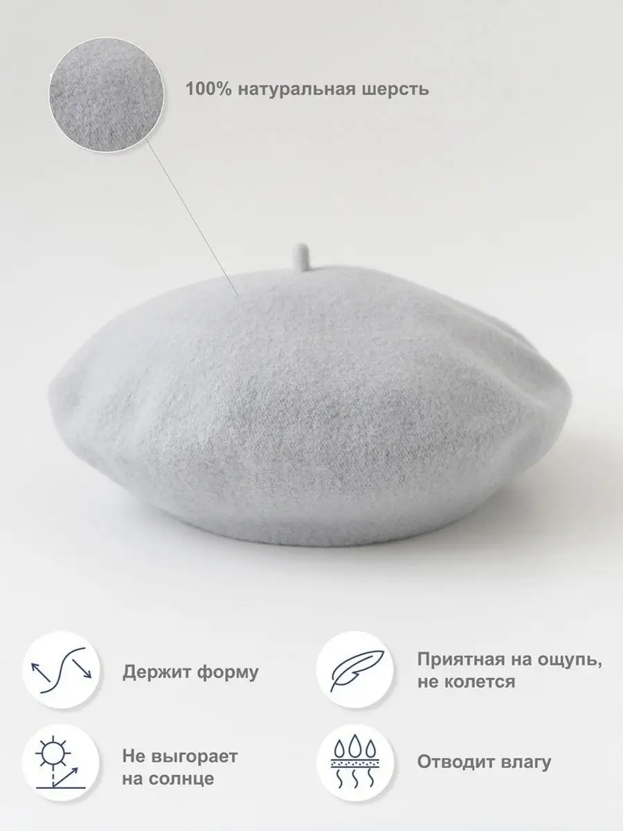 Описание: Ранняя весна и поздняя осень не балуют теплом, и приходится носить головные уборы. Элегантный берет из мягкого фетра - лучший вариант на каждый день для девушек. Фетровый берет подойдёт как подростку, так и взрослой женщине. Шерстяная шапочка с миниатюрным помпоном подчеркнёт очарование владелицы. Уютный берет согреет во время прогулки, закрывая голову от ветра и дождя. Классическая шапочка уместна в любой ситуации: вы можете надеть её на работу, романтическое свидание или встречу с подругами. Французский головной убор сочетается со светлой дублёнкой, укороченной шубкой или кашемировым пальто. Образ дополнят изящные аксессуары - белые жемчужные серьги, красная косынка или вязанный шарф. Берет сшит из натуральной валяной шерсти, приятной на ощупь. При долгой носке нет ощущения покалывания - вы чувствуете комфорт, тепло и мягкость! Материал изделия тонкий, но достаточно плотный и износостойкий. Шерстяные волокна сохраняют тепло и пропускают воздух - кожа не потеет и не переохлаждается. Объёмный головной убор превосходно держит форму и сохраняет яркость цвета. Производитель - чешский бренд "Тонак", известный высоким качеством товаров. У нас можно купить красивые береты из коллекции 2021-2022 - черный, голубой, серый, белый, рубиновый. Модная шапочка во французском стиле создаст эффектный и кокетливый образ. В ней легко почувствовать себя настоящей парижанкой, которая прогуливается по улочкам Монмартра и любуется осенним пейзажем. Источаете шарм, ловите восхищённые взгляды - триумф!