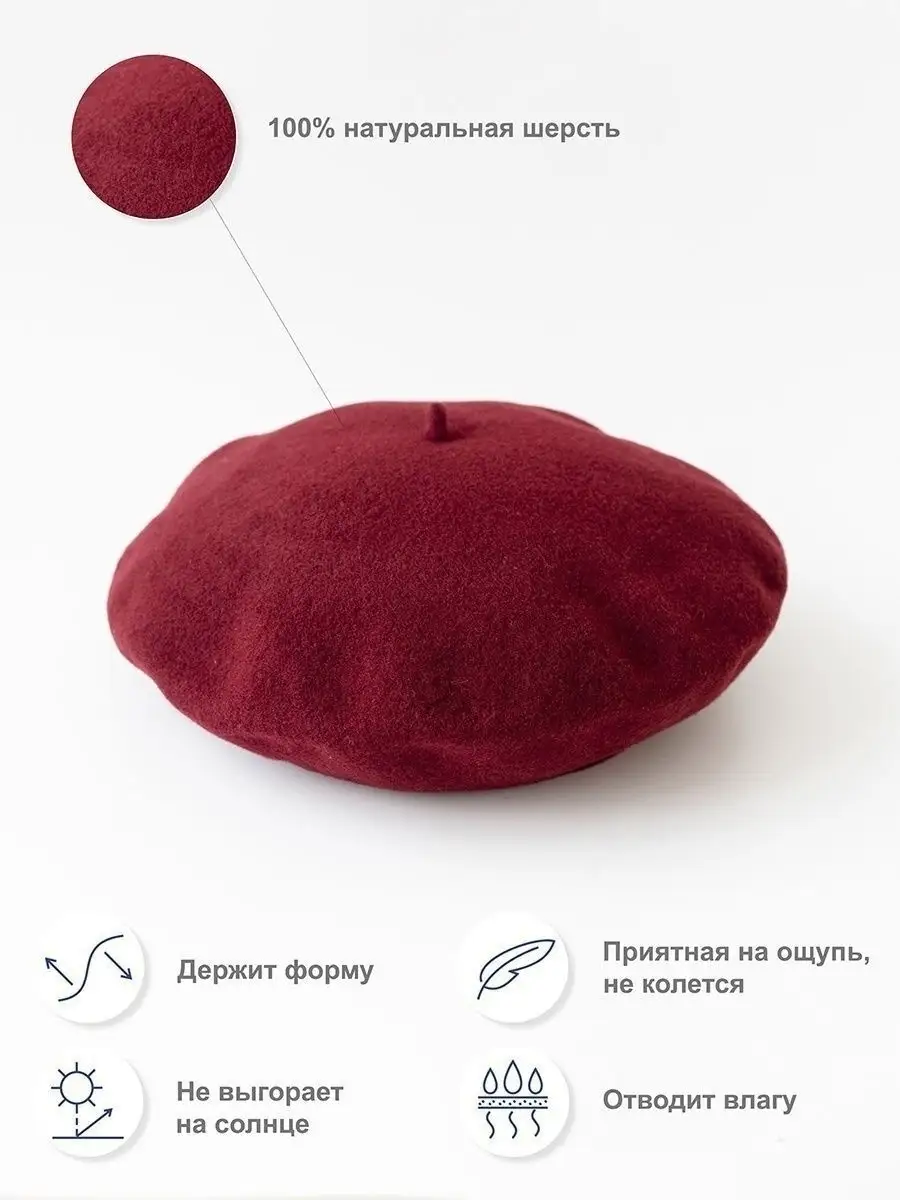 Описание: Ранняя весна и поздняя осень не балуют теплом, и приходится носить головные уборы. Элегантный берет из мягкого фетра - лучший вариант на каждый день для девушек. Фетровый берет подойдёт как подростку, так и взрослой женщине. Шерстяная шапочка с миниатюрным помпоном подчеркнёт очарование владелицы. Уютный берет согреет во время прогулки, закрывая голову от ветра и дождя. Классическая шапочка уместна в любой ситуации: вы можете надеть её на работу, романтическое свидание или встречу с подругами. Французский головной убор сочетается со светлой дублёнкой, укороченной шубкой или кашемировым пальто. Образ дополнят изящные аксессуары - белые жемчужные серьги, красная косынка или вязанный шарф. Берет сшит из натуральной валяной шерсти, приятной на ощупь. При долгой носке нет ощущения покалывания - вы чувствуете комфорт, тепло и мягкость! Материал изделия тонкий, но достаточно плотный и износостойкий. Шерстяные волокна сохраняют тепло и пропускают воздух - кожа не потеет и не переохлаждается. Объёмный головной убор превосходно держит форму и сохраняет яркость цвета. Производитель - чешский бренд "Тонак", известный высоким качеством товаров. У нас можно купить красивые береты из коллекции 2021-2022 - черный, голубой, серый, белый, рубиновый. Модная шапочка во французском стиле создаст эффектный и кокетливый образ. В ней легко почувствовать себя настоящей парижанкой, которая прогуливается по улочкам Монмартра и любуется осенним пейзажем. Источаете шарм, ловите восхищённые взгляды - триумф!