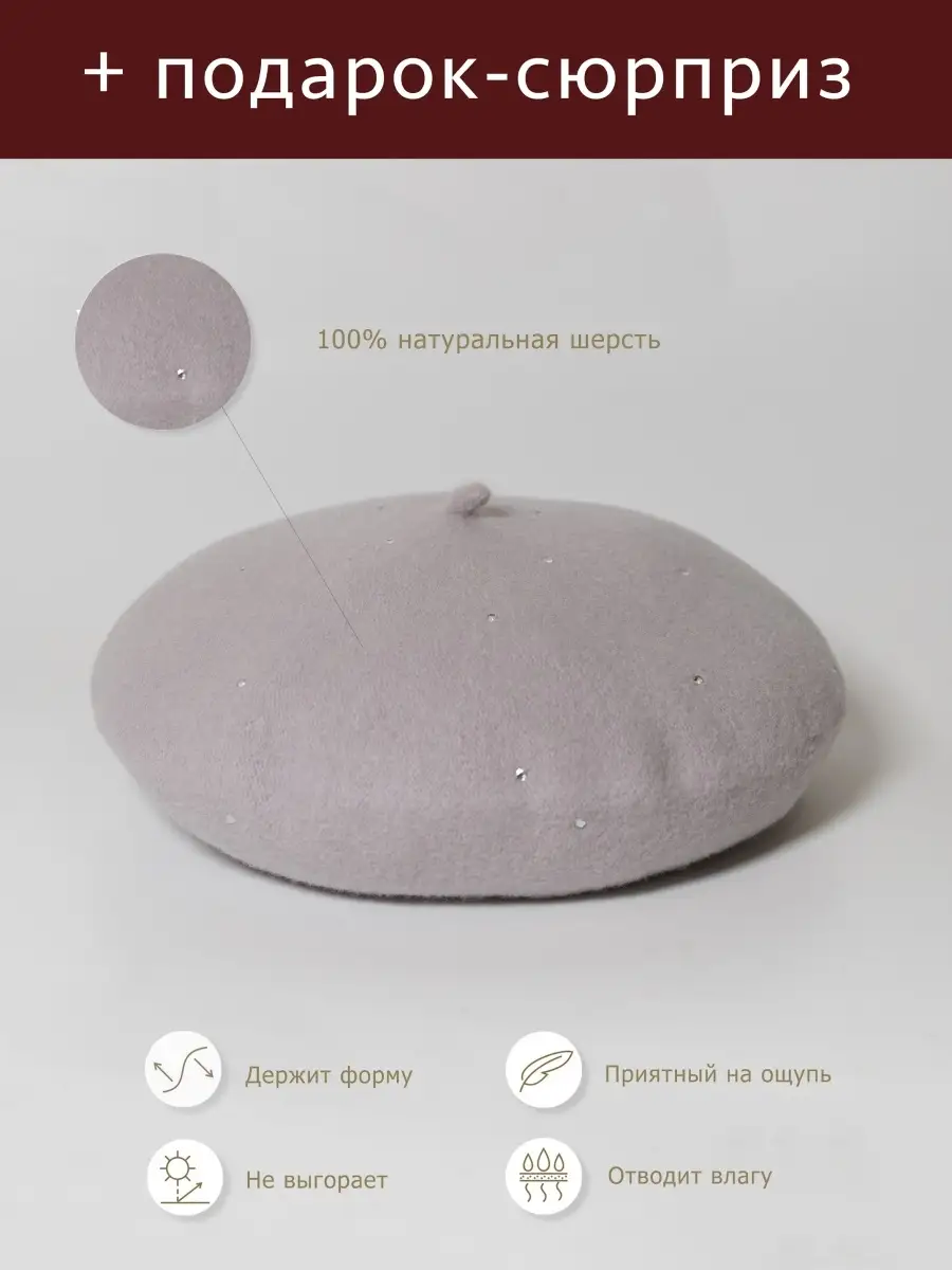 Берет женский зимний осенний фетровый, шапка шерсть на осень
