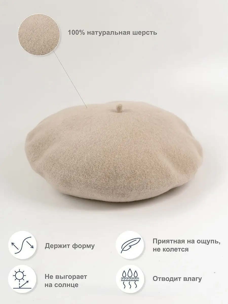 Описание: Ранняя весна и поздняя осень не балуют теплом, и приходится носить головные уборы. Элегантный берет из мягкого фетра - лучший вариант на каждый день для девушек. Фетровый берет подойдёт как подростку, так и взрослой женщине. Шерстяная шапочка с миниатюрным помпоном подчеркнёт очарование владелицы. Уютный берет согреет во время прогулки, закрывая голову от ветра и дождя. Классическая шапочка уместна в любой ситуации: вы можете надеть её на работу, романтическое свидание или встречу с подругами. Французский головной убор сочетается со светлой дублёнкой, укороченной шубкой или кашемировым пальто. Образ дополнят изящные аксессуары - белые жемчужные серьги, красная косынка или вязанный шарф. Берет сшит из натуральной валяной шерсти, приятной на ощупь. При долгой носке нет ощущения покалывания - вы чувствуете комфорт, тепло и мягкость! Материал изделия тонкий, но достаточно плотный и износостойкий. Шерстяные волокна сохраняют тепло и пропускают воздух - кожа не потеет и не переохлаждается. Объёмный головной убор превосходно держит форму и сохраняет яркость цвета. Производитель - чешский бренд "Тонак", известный высоким качеством товаров. У нас можно купить красивые береты из коллекции 2021-2022 - черный, голубой, серый, белый, рубиновый. Модная шапочка во французском стиле создаст эффектный и кокетливый образ. В ней легко почувствовать себя настоящей парижанкой, которая прогуливается по улочкам Монмартра и любуется осенним пейзажем. Источаете шарм, ловите восхищённые взгляды - триумф!