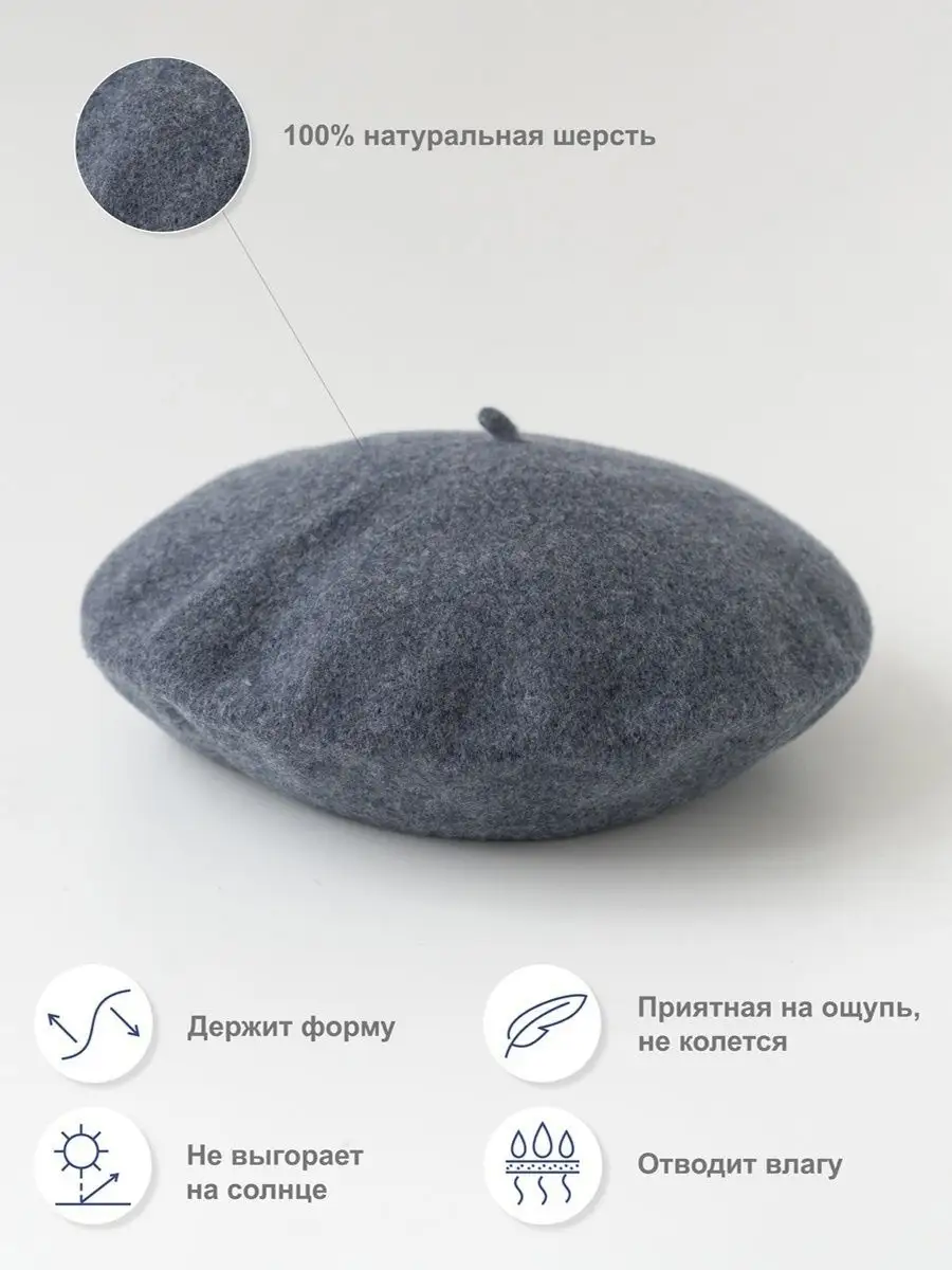 Описание: Ранняя весна и поздняя осень не балуют теплом, и приходится носить головные уборы. Элегантный берет из мягкого фетра - лучший вариант на каждый день для девушек. Фетровый берет подойдёт как подростку, так и взрослой женщине. Шерстяная шапочка с миниатюрным помпоном подчеркнёт очарование владелицы. Уютный берет согреет во время прогулки, закрывая голову от ветра и дождя. Классическая шапочка уместна в любой ситуации: вы можете надеть её на работу, романтическое свидание или встречу с подругами. Французский головной убор сочетается со светлой дублёнкой, укороченной шубкой или кашемировым пальто. Образ дополнят изящные аксессуары - белые жемчужные серьги, красная косынка или вязанный шарф. Берет сшит из натуральной валяной шерсти, приятной на ощупь. При долгой носке нет ощущения покалывания - вы чувствуете комфорт, тепло и мягкость! Материал изделия тонкий, но достаточно плотный и износостойкий. Шерстяные волокна сохраняют тепло и пропускают воздух - кожа не потеет и не переохлаждается. Объёмный головной убор превосходно держит форму и сохраняет яркость цвета. Производитель - чешский бренд "Тонак", известный высоким качеством товаров. У нас можно купить красивые береты из коллекции 2021-2022 - черный, голубой, серый, белый, рубиновый. Модная шапочка во французском стиле создаст эффектный и кокетливый образ. В ней легко почувствовать себя настоящей парижанкой, которая прогуливается по улочкам Монмартра и любуется осенним пейзажем. Источаете шарм, ловите восхищённые взгляды - триумф!