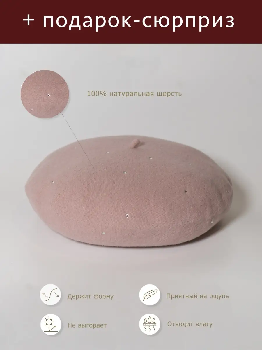 Описание: Ранняя весна и поздняя осень не балуют теплом, и приходится носить головные уборы. Элегантный берет из мягкого фетра - лучший вариант на каждый день для девушек. Фетровый берет подойдёт как подростку, так и взрослой женщине. Шерстяная шапочка с миниатюрным помпоном подчеркнёт очарование владелицы. Уютный берет согреет во время прогулки, закрывая голову от ветра и дождя. Классическая шапочка уместна в любой ситуации: вы можете надеть её на работу, романтическое свидание или встречу с подругами. Французский головной убор сочетается со светлой дублёнкой, укороченной шубкой или кашемировым пальто. Образ дополнят изящные аксессуары - белые жемчужные серьги, красная косынка или вязанный шарф. Берет сшит из натуральной валяной шерсти, приятной на ощупь. При долгой носке нет ощущения покалывания - вы чувствуете комфорт, тепло и мягкость! Материал изделия тонкий, но достаточно плотный и износостойкий. Шерстяные волокна сохраняют тепло и пропускают воздух - кожа не потеет и не переохлаждается. Объёмный головной убор превосходно держит форму и сохраняет яркость цвета. Производитель - чешский бренд "Тонак", известный высоким качеством товаров. У нас можно купить красивые береты из коллекции 2021-2022 - черный, голубой, серый, белый, рубиновый. Модная шапочка во французском стиле создаст эффектный и кокетливый образ. В ней легко почувствовать себя настоящей парижанкой, которая прогуливается по улочкам Монмартра и любуется осенним пейзажем. Источаете шарм, ловите восхищённые взгляды - триумф!