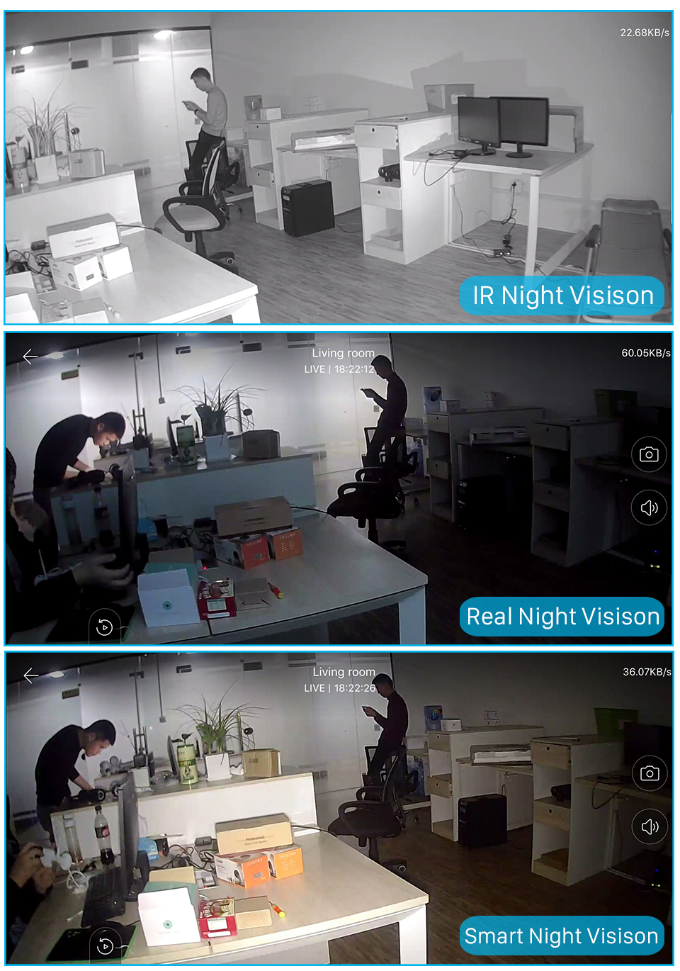 30-50 метров ИК-расстояние, полноцветное ночное видение 20-40 м.