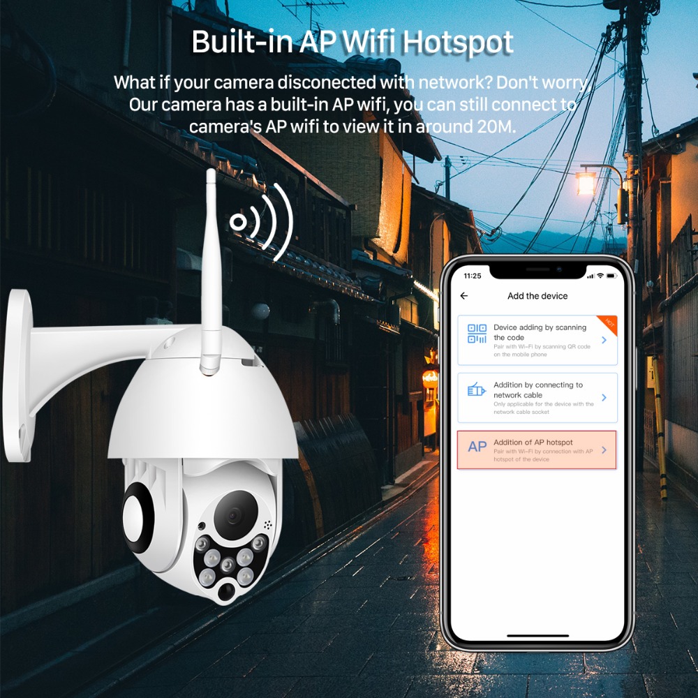 Наша камера имеет встроенную точку доступа Wi-Fi, вы все равно можете подключиться к точке доступа Wi-Fi камеры, чтобы просматривать ее примерно на 20 м.