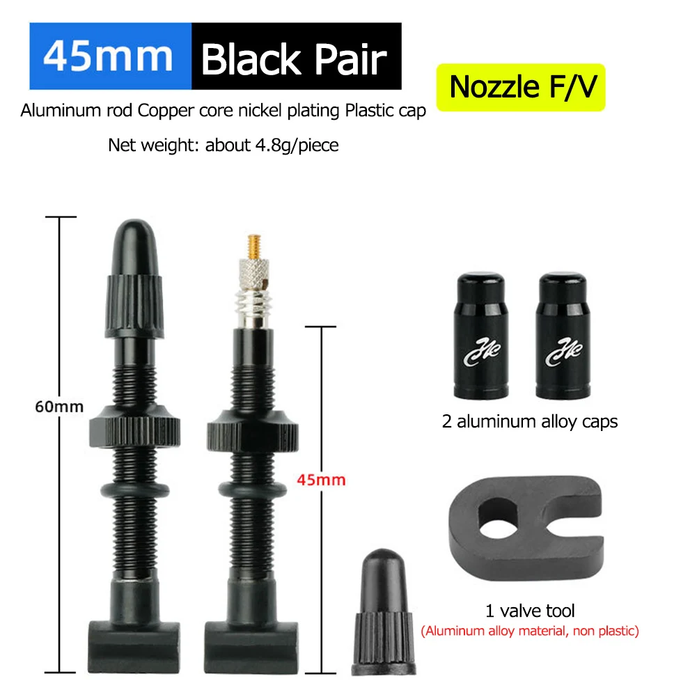 Бескамерный клапан для велосипеда, 1 пара, алюминиевый сплав, 45 мм, бескамерная шина, клапан, алюминиевый стержень, медный сердечник, цельное квадратное дно