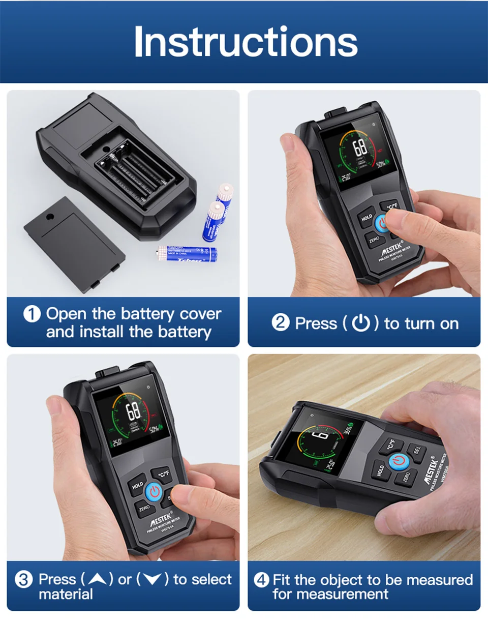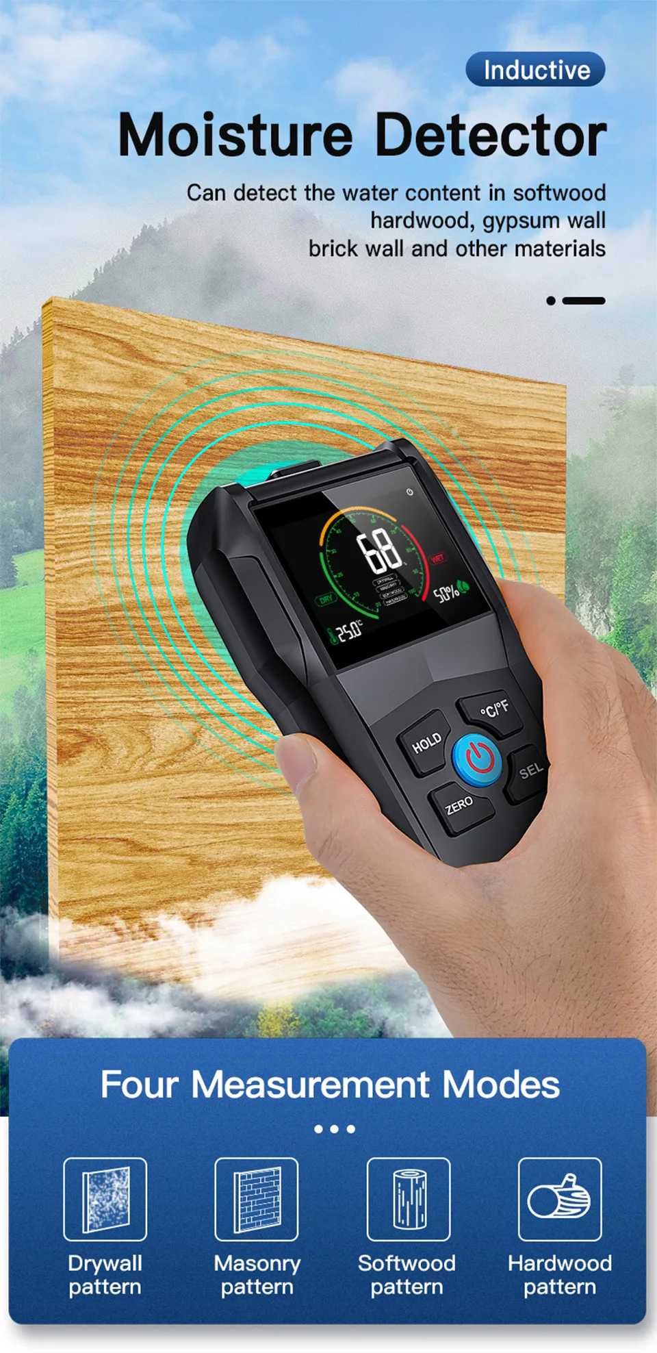 * Может обнаруживать воду из древесины хвойных пород, гипсовой стены кирпичной стены и других материалов
