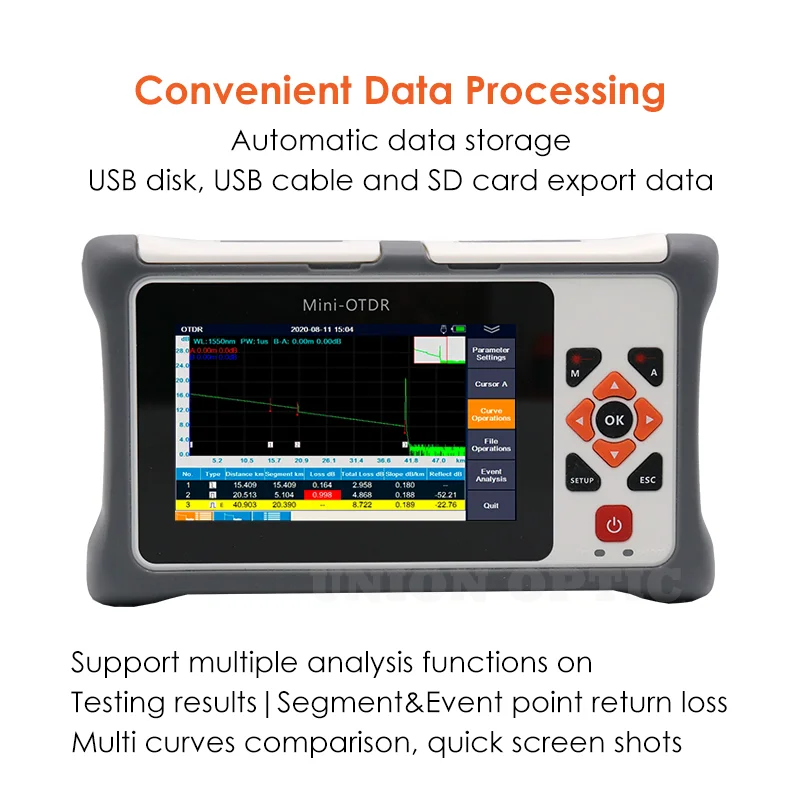 Бесплатная доставка 2023 мини-рефлектометр 26/24 дБ активный волоконно-оптический рефлектометр сенсорный экран VFL OLS OPM карта событий Тестер кабеля Ethernet