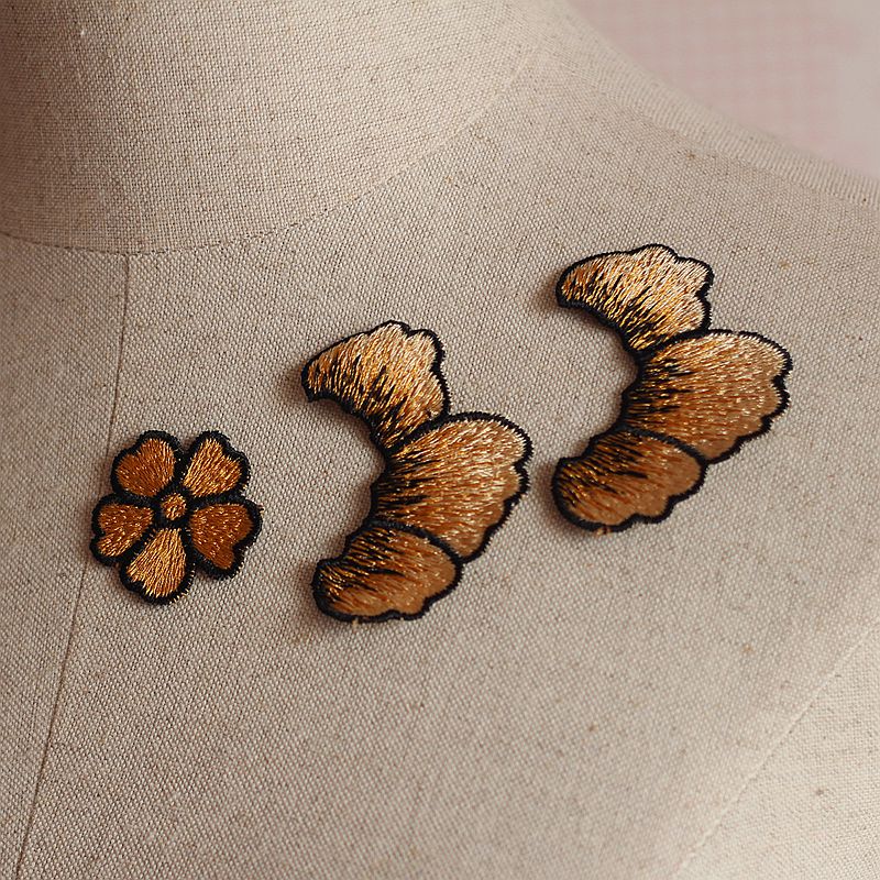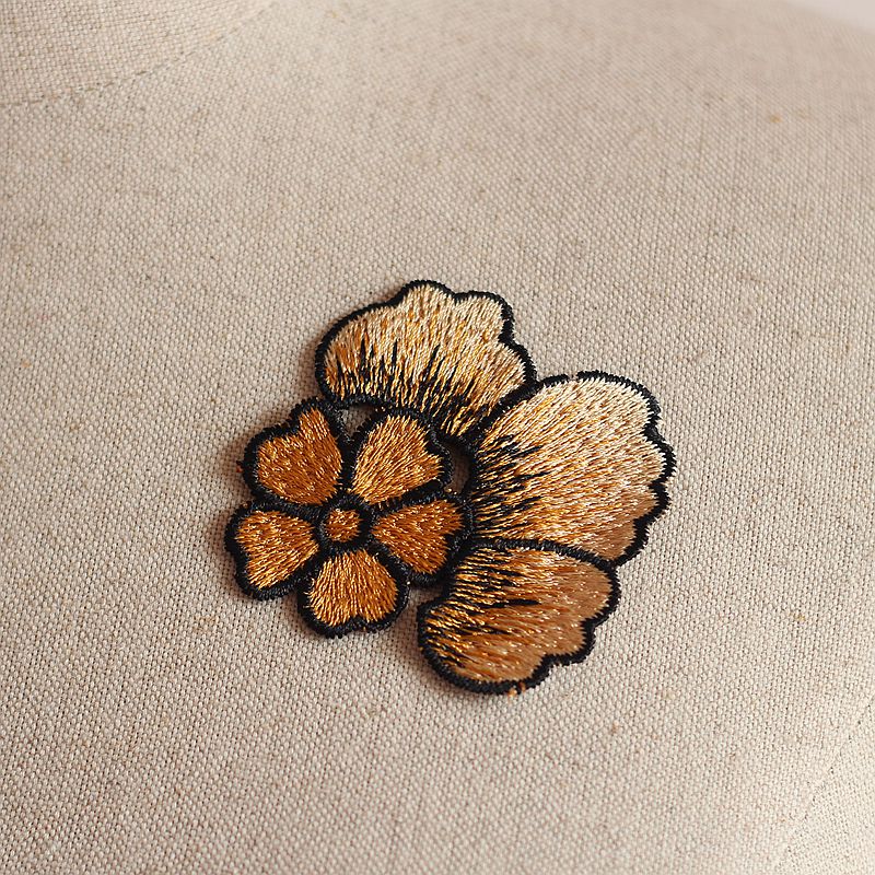 Бесплатная доставка (5 шт./лот) золотистый + черный шитье цветочный мотив кружева аппликация, свадебная вышивка кружева патч