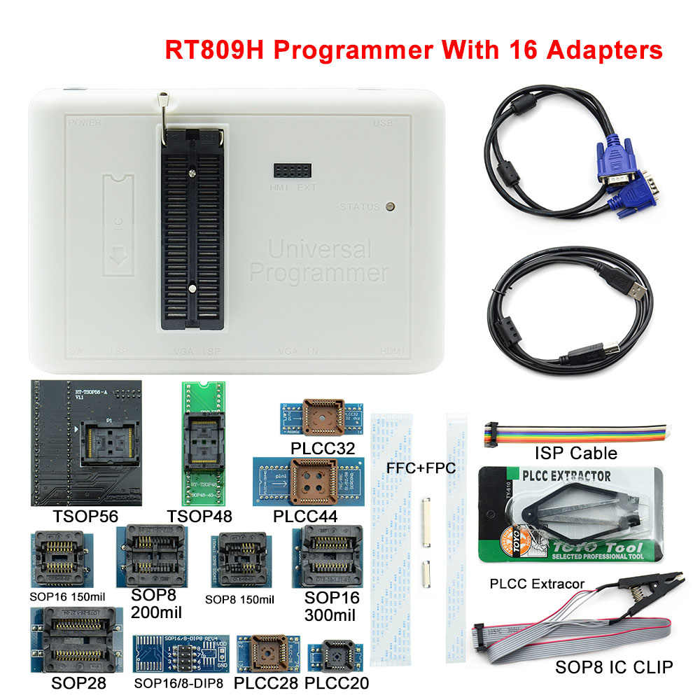 Бесплатная доставка, оригинальный RT809H + 58 адаптеров EMMC-Nand FLASH, чрезвычайно быстрая Универсальная Серия программаторов, набор аксессуаров с кабелями