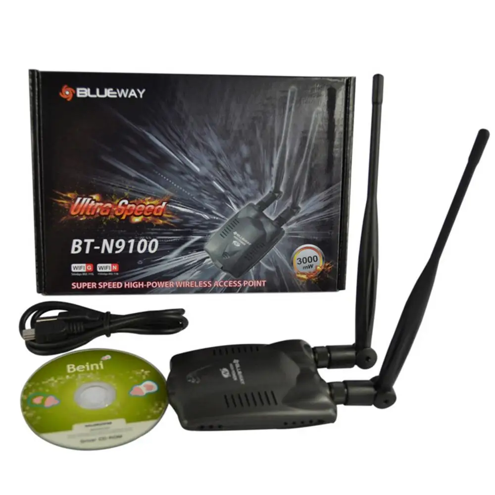 Беспроводная Beini Бесплатная Интернет дальность 3000 МВт двойная Wifi антенна Blueway USB Wifi адаптер BT-N9100