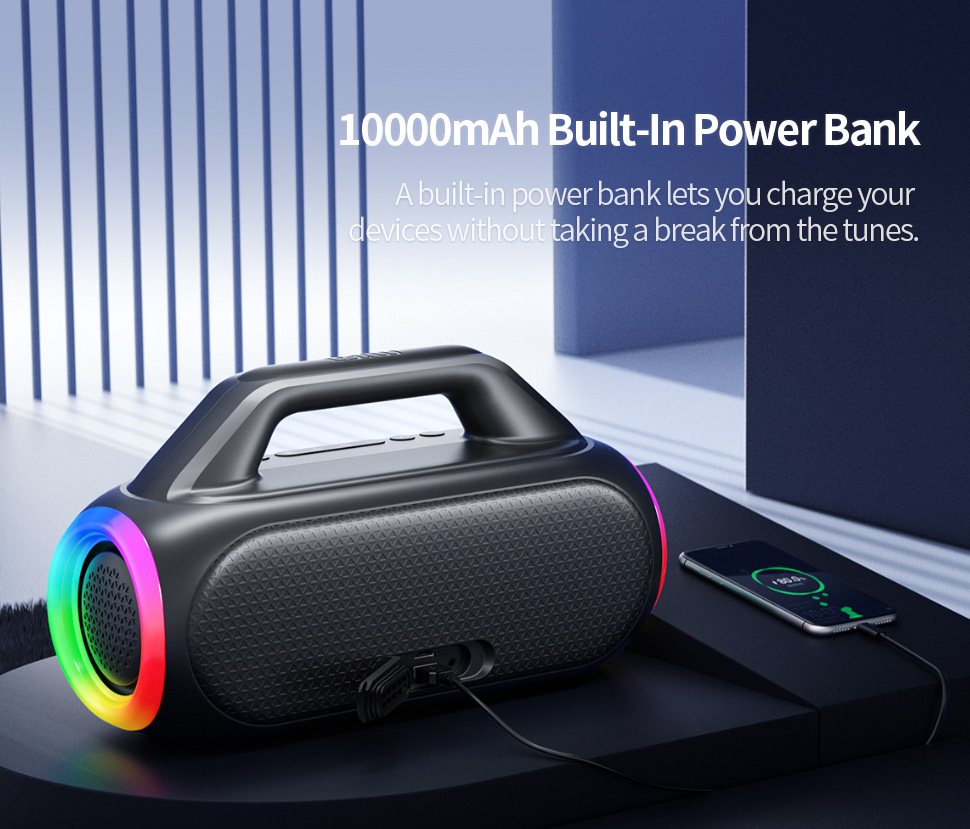 Встроенный внешний аккумулятор позволяет заряжать устройства, не отвлекая от мелодий.