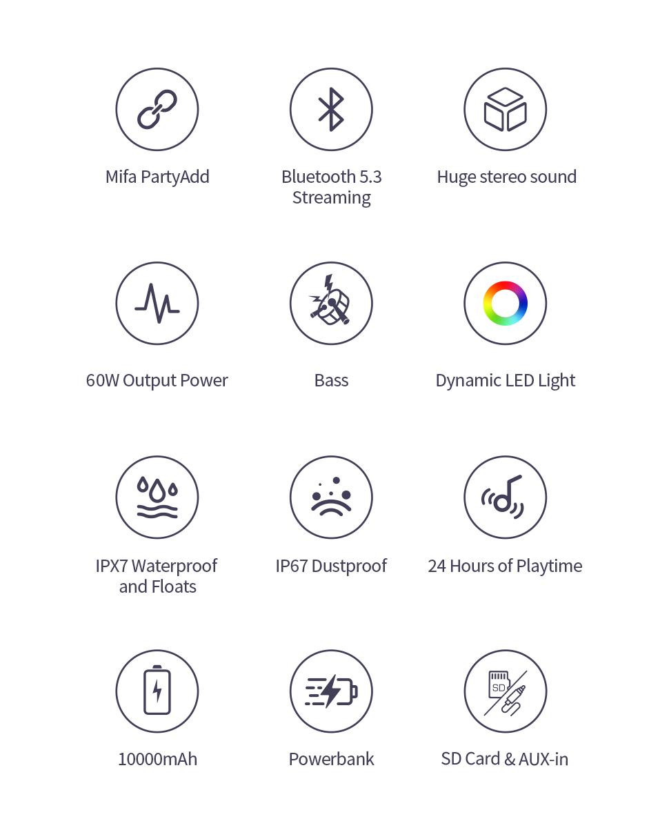 Подключите до 2 смартфонов или планшетов к динамику по беспроводной сети и по очереди Наслаждайтесь звуком mifa WildBox