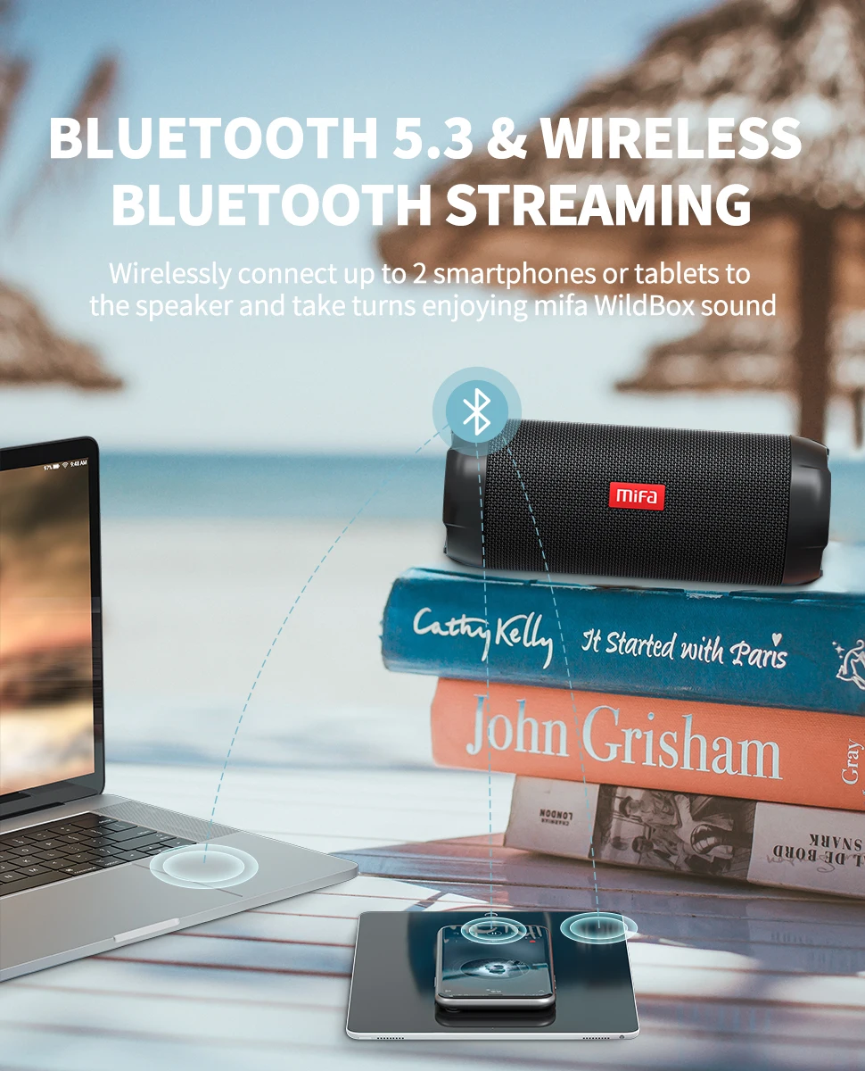 Подключите до 2 смартфонов или планшетов к динамику по беспроводной сети и по очереди Наслаждайтесь звуком mifa WildRod