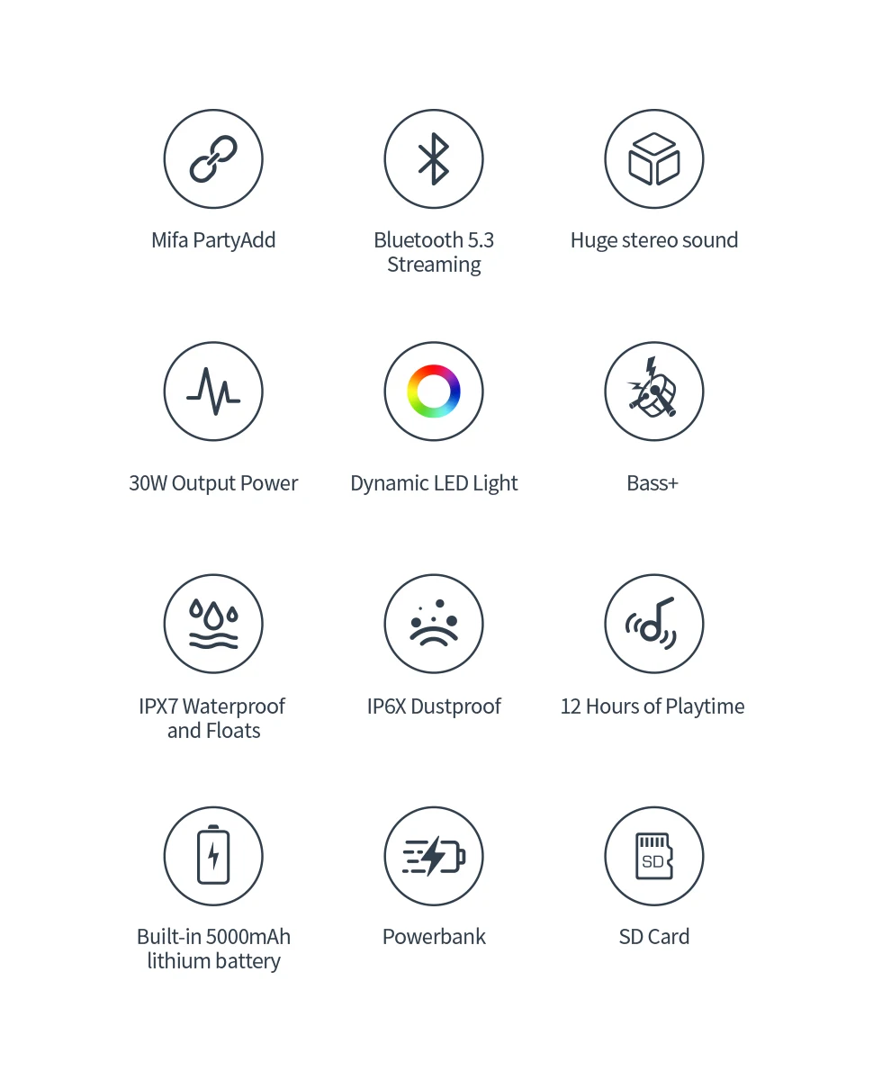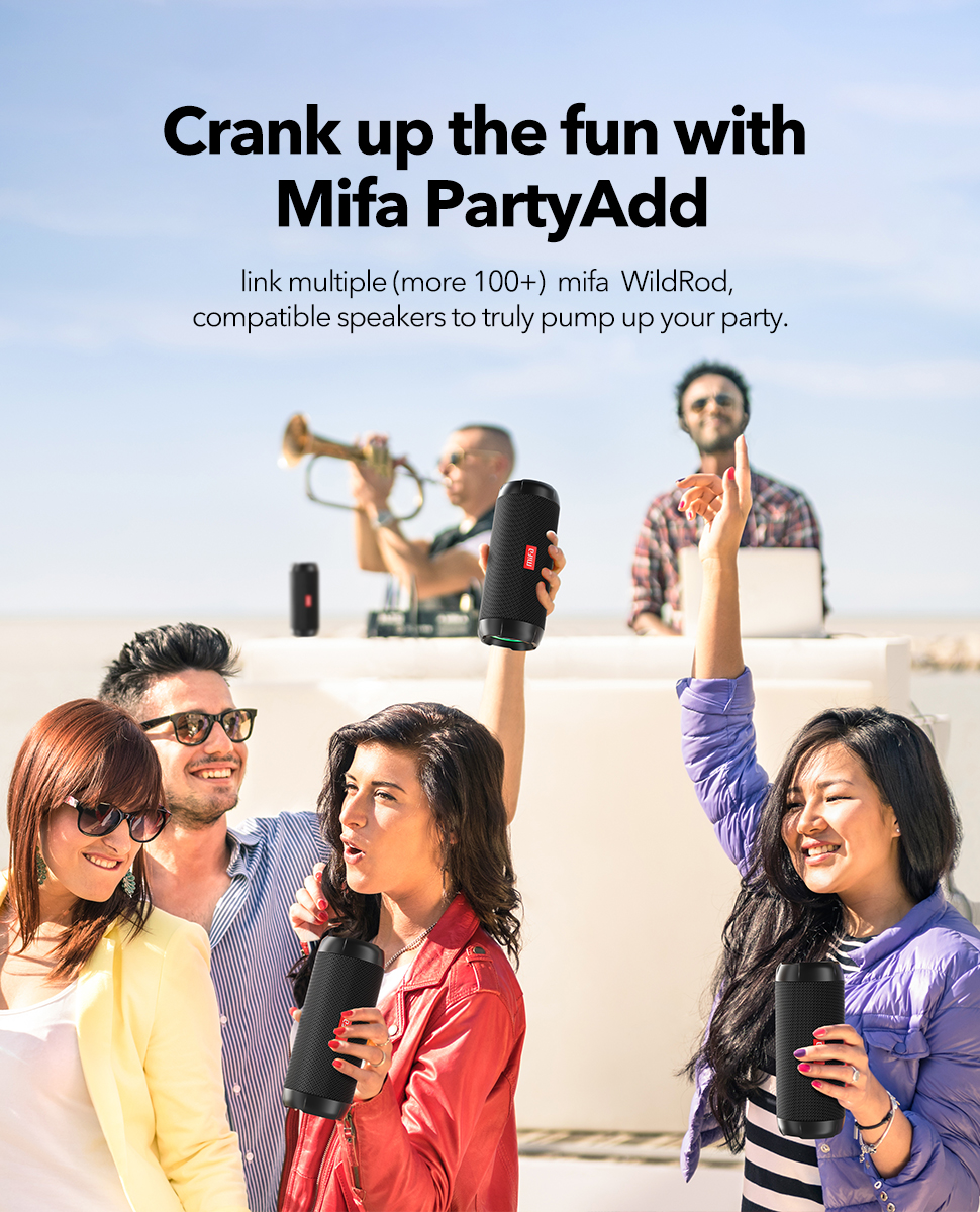 Подключите несколько (более 100 +) совместимых динамиков mifa WildRod, чтобы по-настоящему прокачать вашу вечеринку.