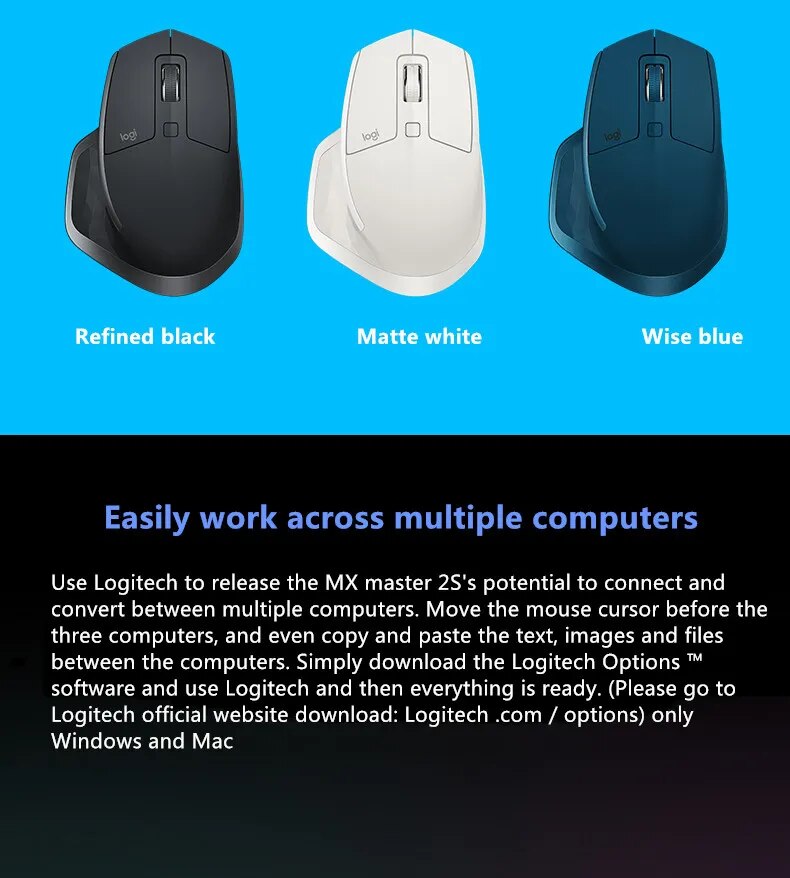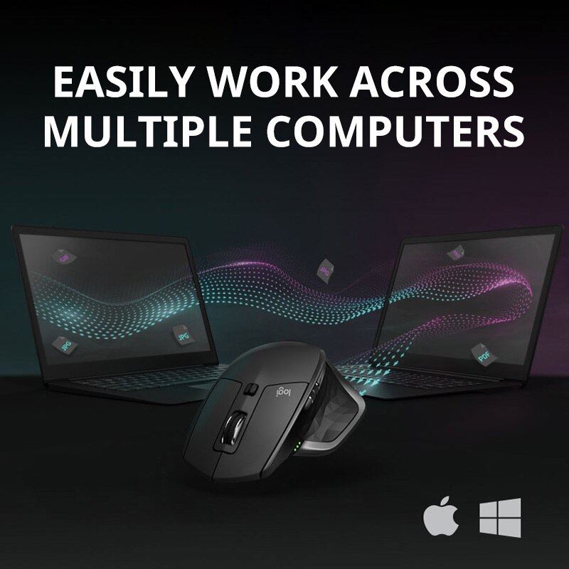 Мы разработали совершенно новый прецизионный датчик 4000DPi для MXMaster 2S, который можно отслеживать практически на любой поверхности, включая стекло. Вы также можете перемещать курсор мыши между тремя компьютерами и даже копировать и вставлять текст, изображения и файлы между компьютерами.