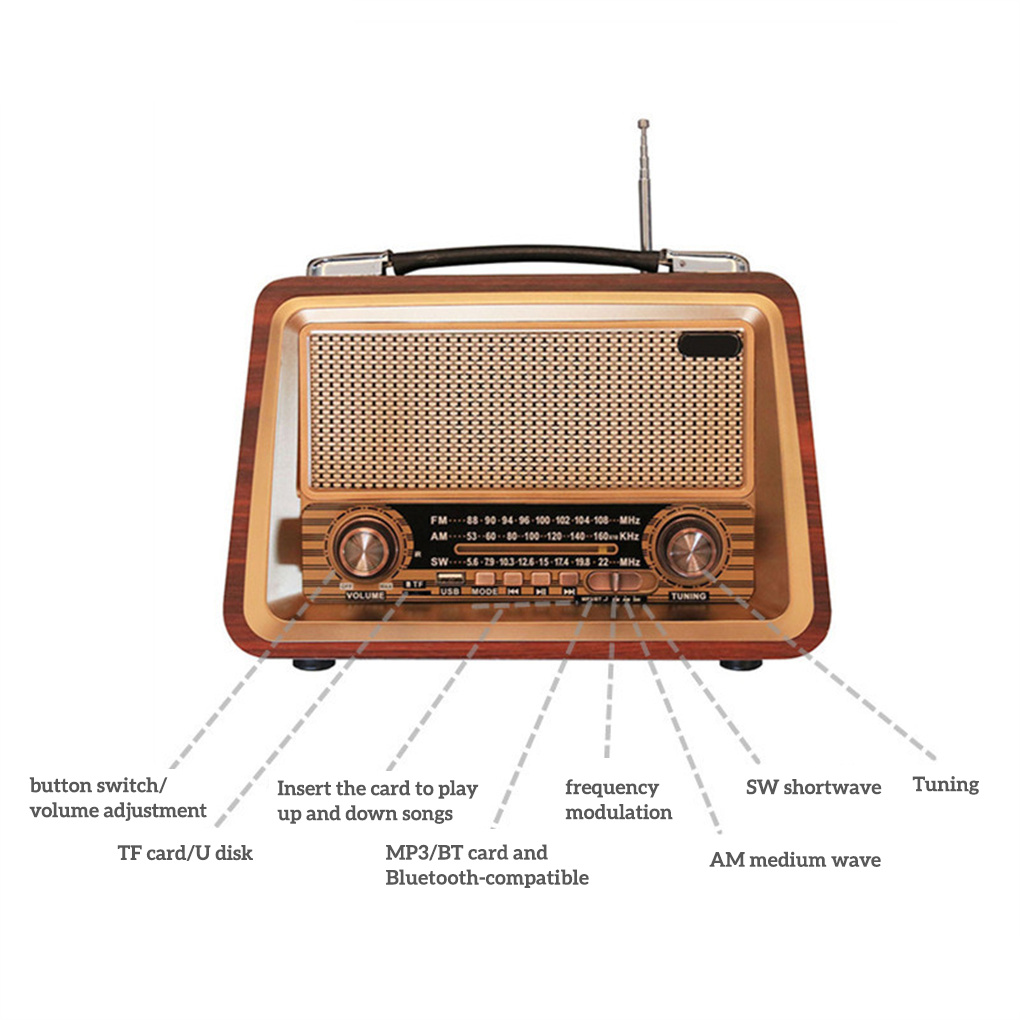 Ретро портативное радио беспроводной Bluetooth-совместимый динамик HIFI стерео AM/FM-радиоприемник плеер USB TF MP3 классический стиль