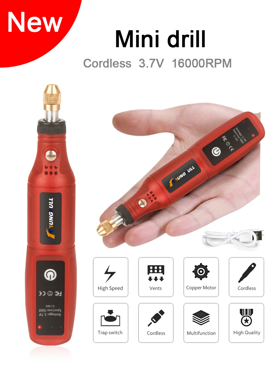 Беспроводная дрель с USB, вращающийся инструмент, деревообрабатывающая гравировальная ручка, Мини Беспроводная электрическая дрель для ювелирных изделий, металла, стекла, Dremel инструменты