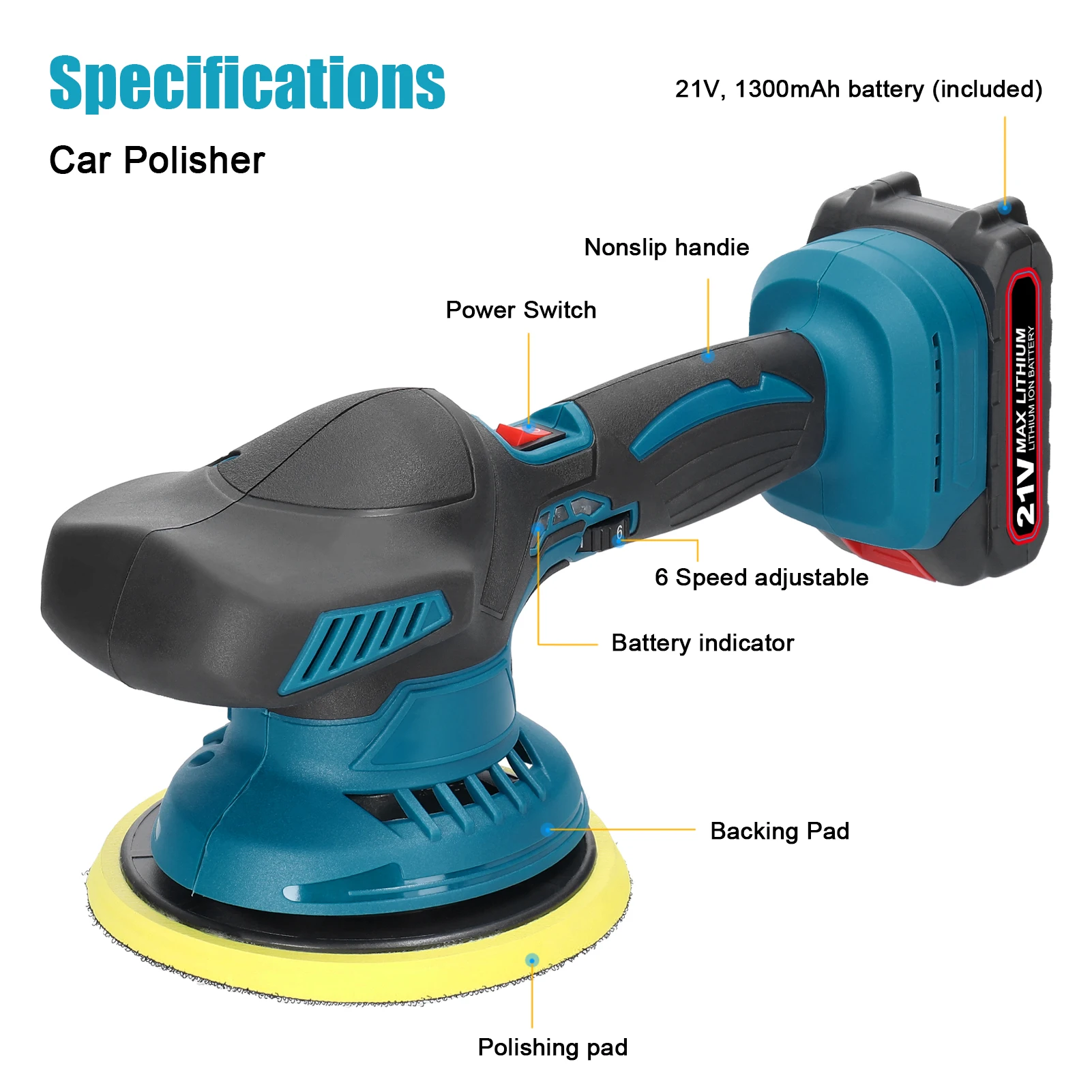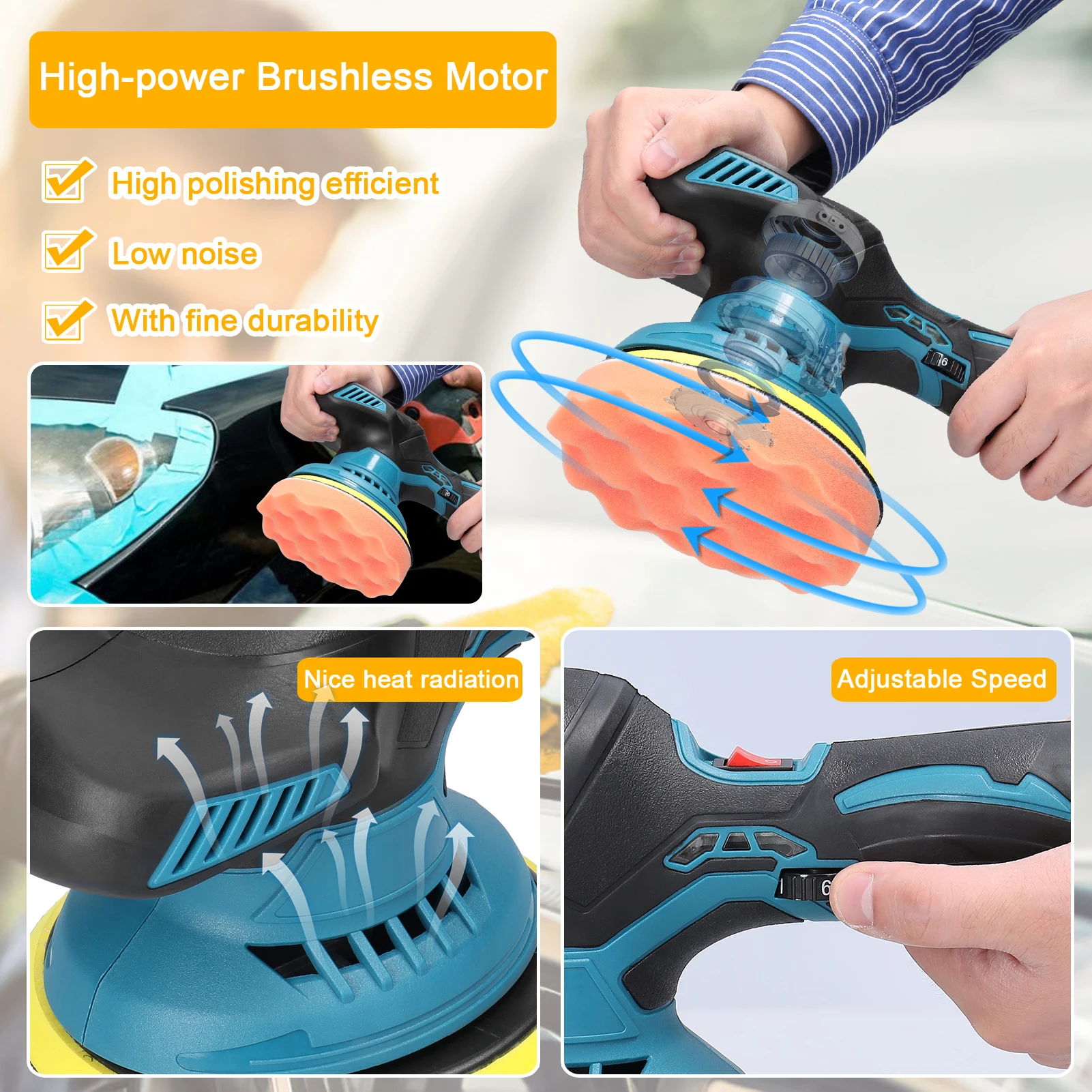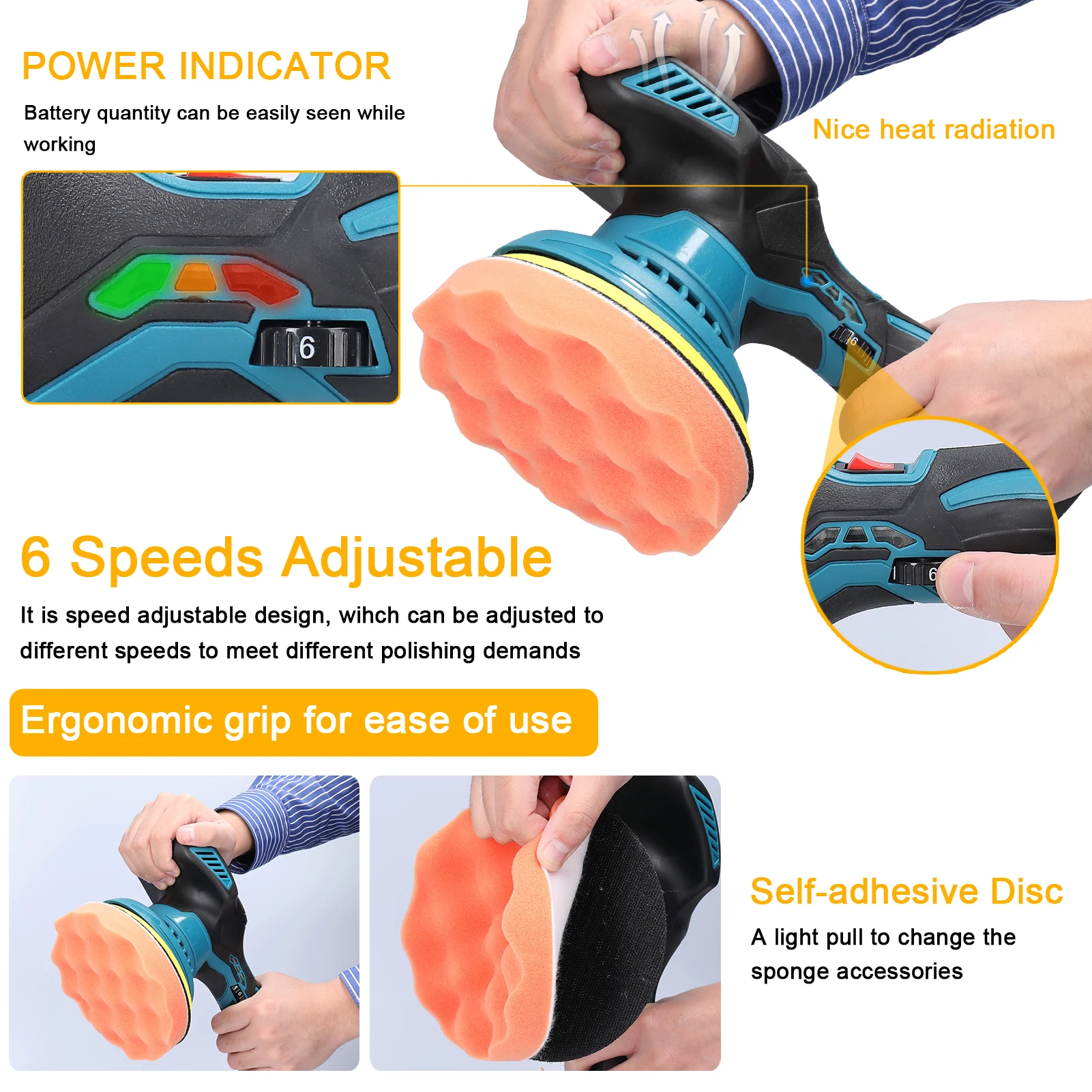 Беспроводная Эксцентриковая полировальная машинка для автомобиля, 8 скоростей, регулируемая электрическая автоматическая полировальная машинка, многофункциональная машинка для полировки металла и дерева