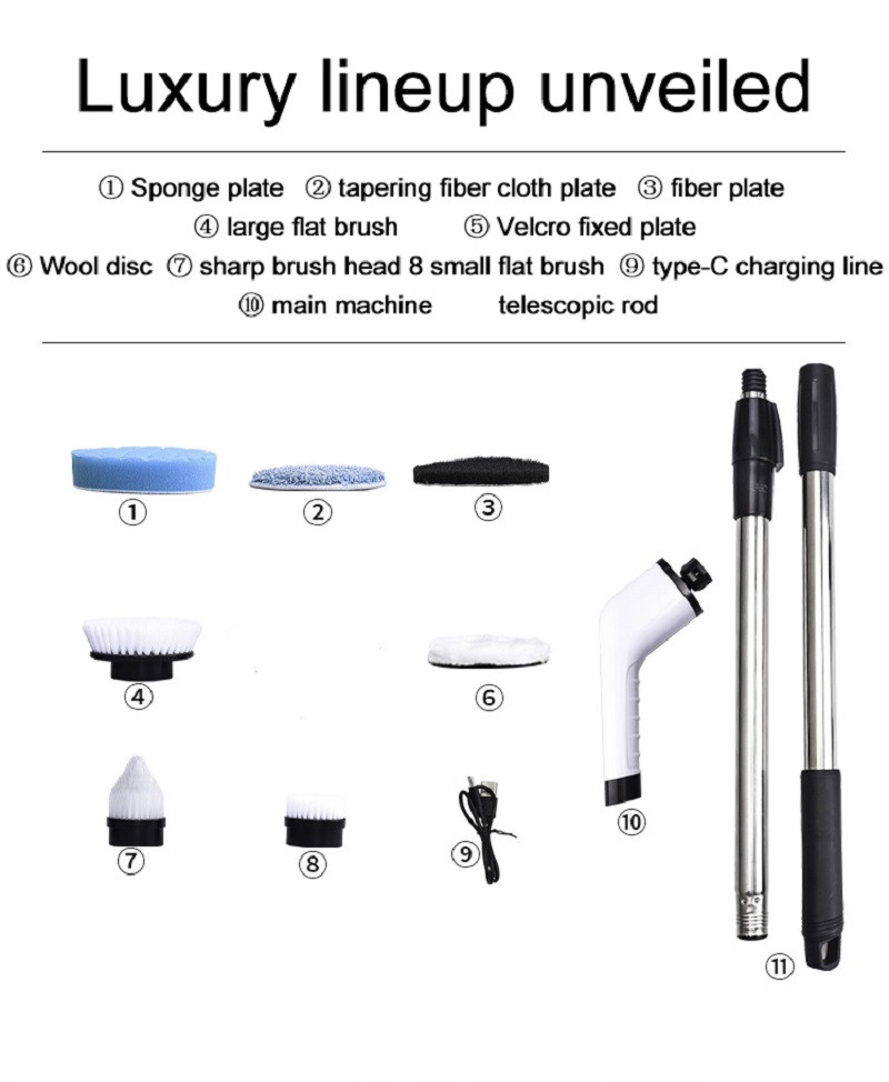 * Многоцелевой: подходит для очистки всех поверхностей дома и автомобиля. Многофункциональная Беспроводная электрическая щетка для чистки может быть собрана по мере необходимости для уборки дома.
