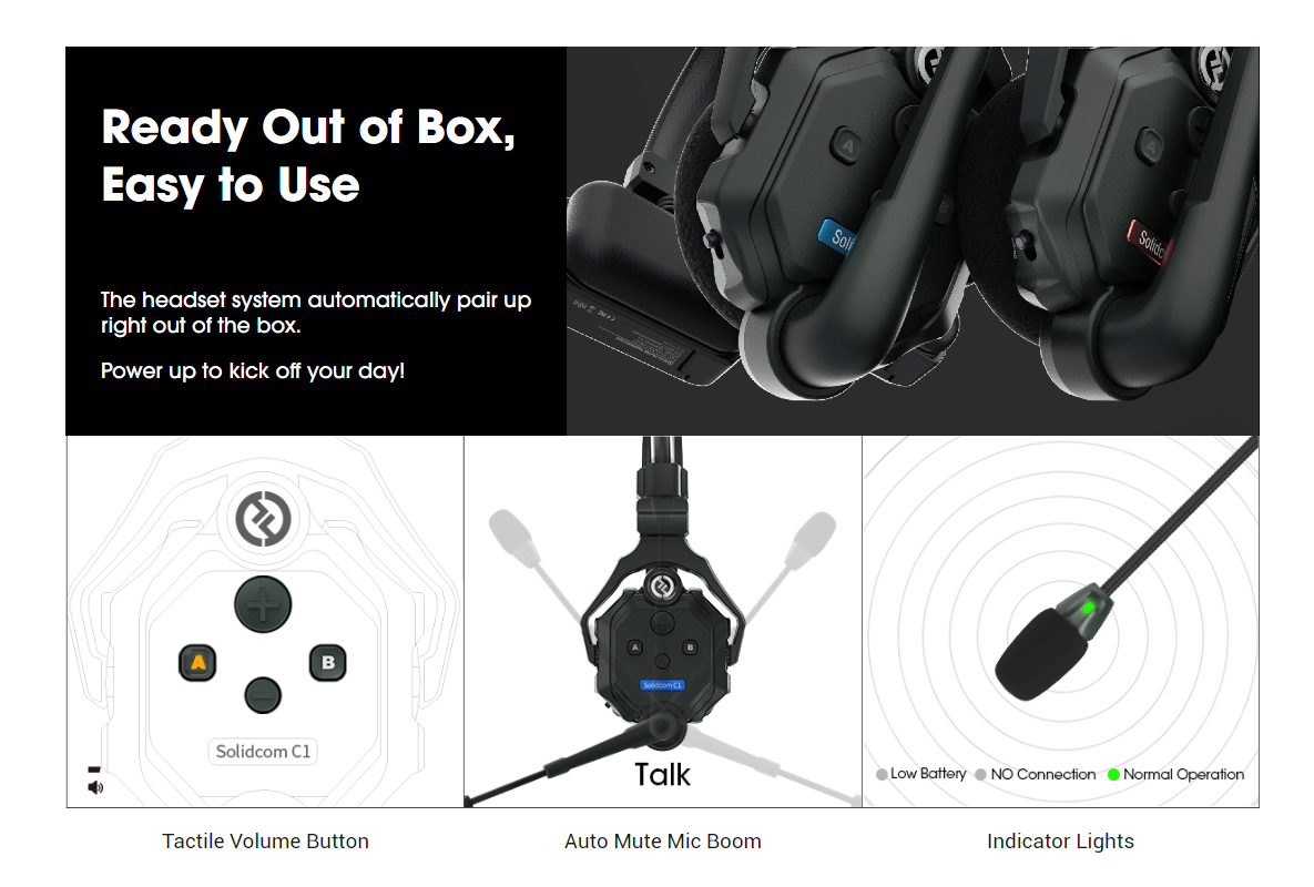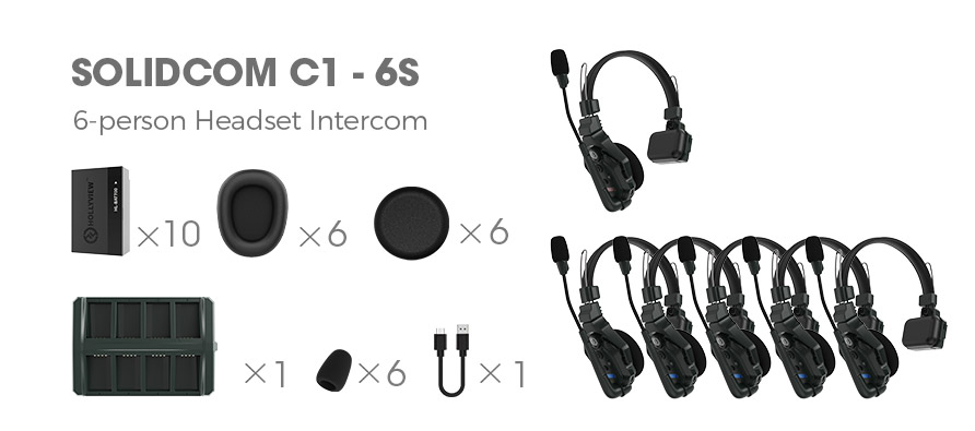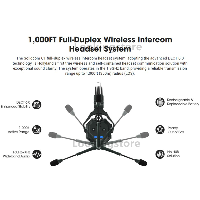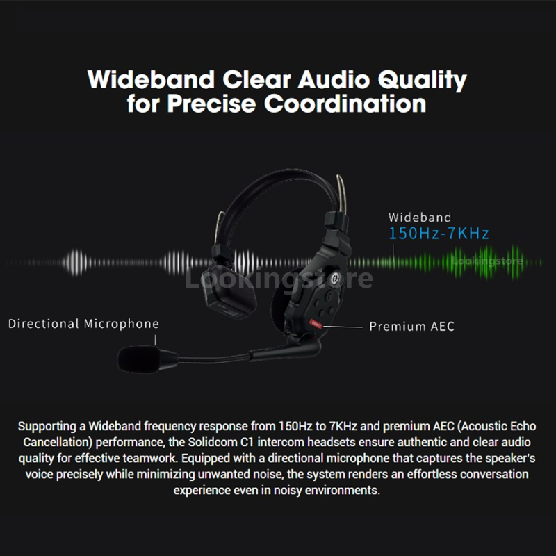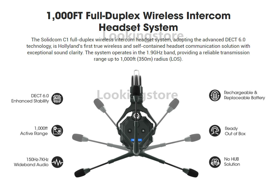 Hollyland Solidcom C1 Беспроводной домофон Коммуникационная гарнитура Дистанционное одно ухо Наушники Микрофон 1000 футов Лос-Диапазон