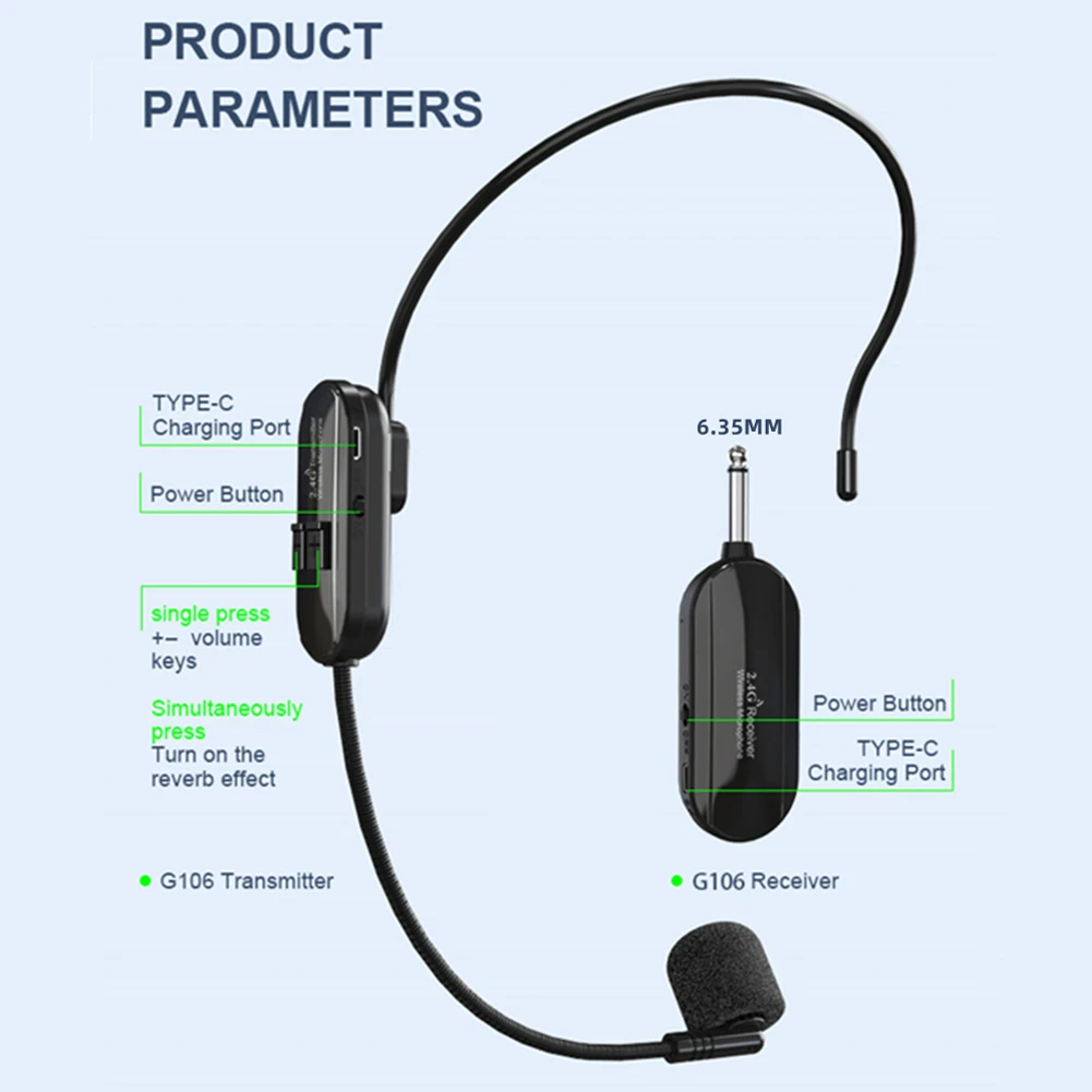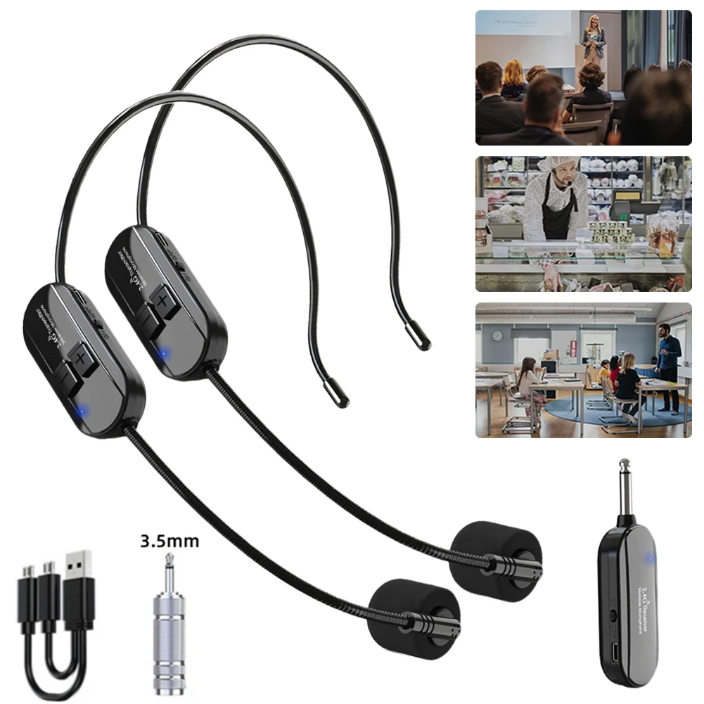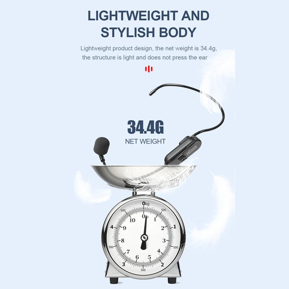 Беспроводная микрофонная гарнитура: Встроенный конденсаторный микрофон с высокой чувствительностью, дальность передачи сигнала до 160 футов (50 м),