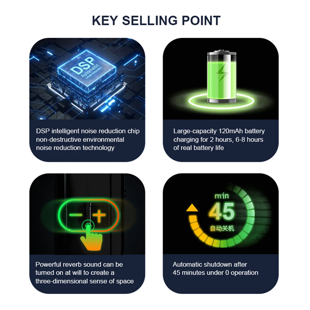 Гуманизированный и продуманный дизайн: микрофон автоматически отключится, если вы не используете микрофон в течение 45 минут без работы, экономя питание и беспокойство.