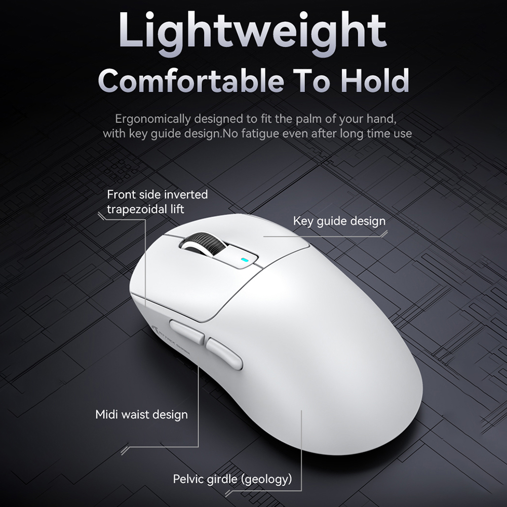 1. Универсальное подключение:Беспроводная игровая мышь PAW3395 предлагает три режима подключения-беспроводное 2,4G, Bluetooth-совместимое 5,2 и проводное, что позволяет пользователям легко переключаться между различными устройствами и соответствовать различным сценариям использования.