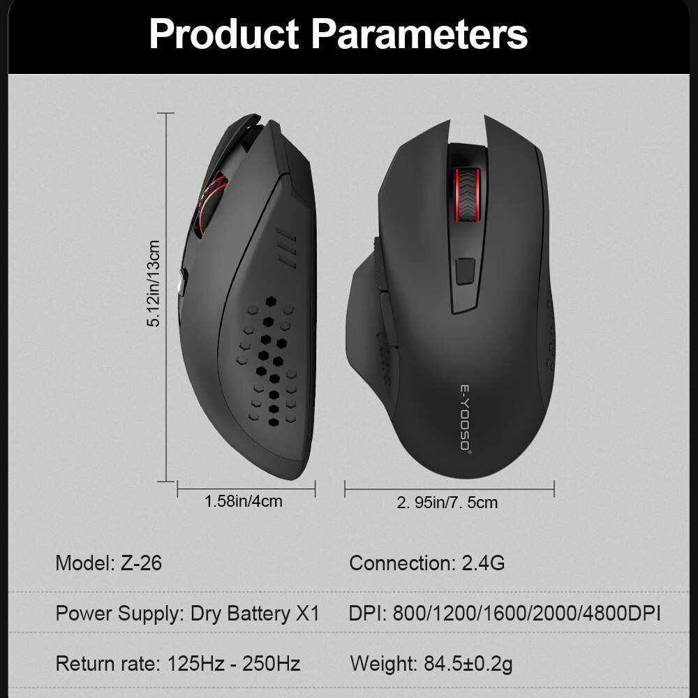 Защита от пота и эргономичный дизайн: мышь E-YOOSO изготовлена из нестандартного материала с защитой от скольжения и пота, конструкция с удобной формой. Палец опирается на обе стороны мыши, обеспечивая дополнительную поддержку, каждый палец может удобно держать в течение длительного времени. А также имеет кнопки вперед и назад, которые делают ваш веб-серфинг более эффективным, идеальную производительность для более чем 50 000 000 нажатий клавиш!5 уровней 4800 точек на дюйм и 2 вида частоты опроса: 5 уровней настроек DPI (800/1200 (по умолчанию)/1600/2000/4800), выберите удобную скорость для работы или игр. X-26 будет двигаться более точно на частоту опроса 125 Гц (по умолчанию) или 250 Гц: Нажмите правую кнопку + среднюю кнопку в течение 3 секунд, чтобы переключить частоту опроса.USB Plug And Play и стабильный Курсор: USB-нано-Приемник можно хранить на задней панели мыши, подключи и работай. Беспроводная технология 2,4 ГГц обеспечивает надежное соединение, расстояние передачи до 33 футов (10 м), что устранило задержки, помехи и обеспечило быструю передачу данных.Универсальная совместимость и широкое использование: большая Беспроводная оптическая мышь MacBook совместима с Windows 11, 10, 8,1, 8, 7, XP, Vista, Linux, Chromebook, mac OS (боковые кнопки недоступны на Mac) и любое устройство с портами USB. А также совместим с ПК, ноутбуком, MacBook и т. Д.Примечание: