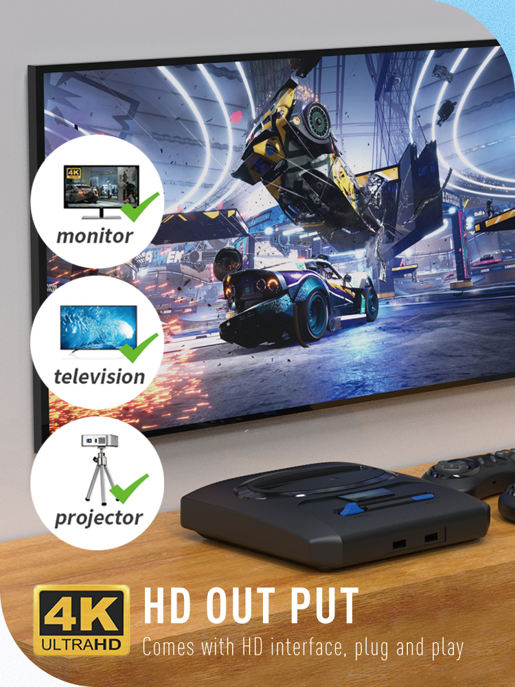 Эта игровая консоль Retro tv games stick 4k для Gega имеет миниатюрный дизайн. При включении телевизора выберите режим HDMI-совместимого выхода (не AV). Подключите и играйте! На этой игровой консоли предустановлено 900 игр и 270 игр для России (игра на русском языке зависит от вариантов покупки), приключения, драки, головоломки, ресурсы, стрельба, спорт и т.д. Выбирайте игру, которая вам нравится!