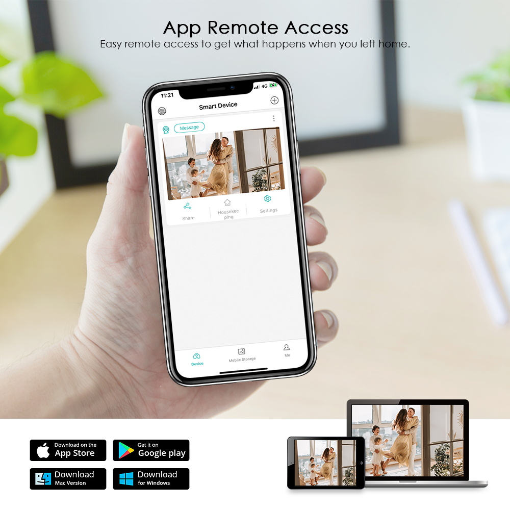 -- Технология Smart P2P-после реализации подключения камеры и устройства вы можете просто войти в учетную запись через телефон или другое устройство, чтобы следить за своим домом в режиме реального времени.