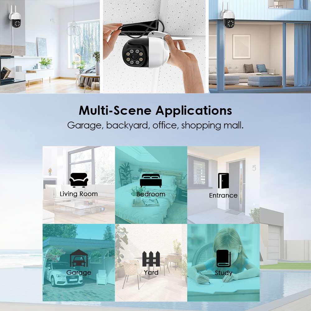 -- Цифровая зум-камера с круизными крышками 300 ° по горизонтали и 90 ° по вертикали, мониторинг вашего дома или двора со всех сторон.