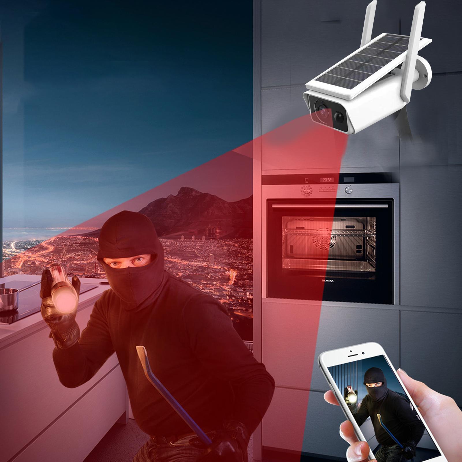 Солнечная камера Беспроводная 3-мегапиксельная IP-камеры Wi-Fi с питанием от батареи Наружное 8 Вт Видеонаблюдение Водонепроницаемый CCTV PIR для умной домашней безопасности