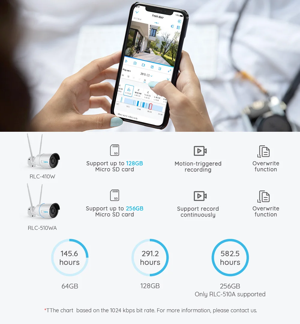 *Рисунок основан на битрейте камеры по умолчанию (1028 KBPS). Фактическое время записи зависит от настроек. Результаты могут быть различными.