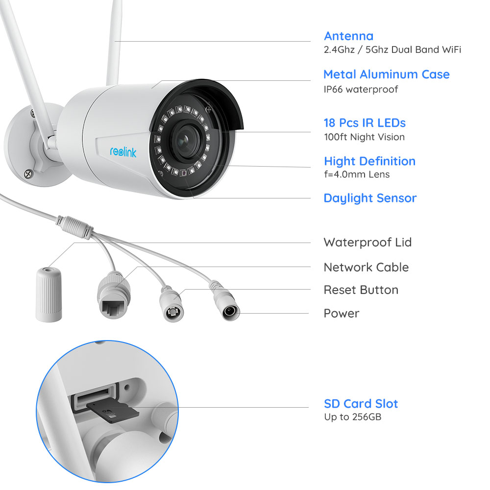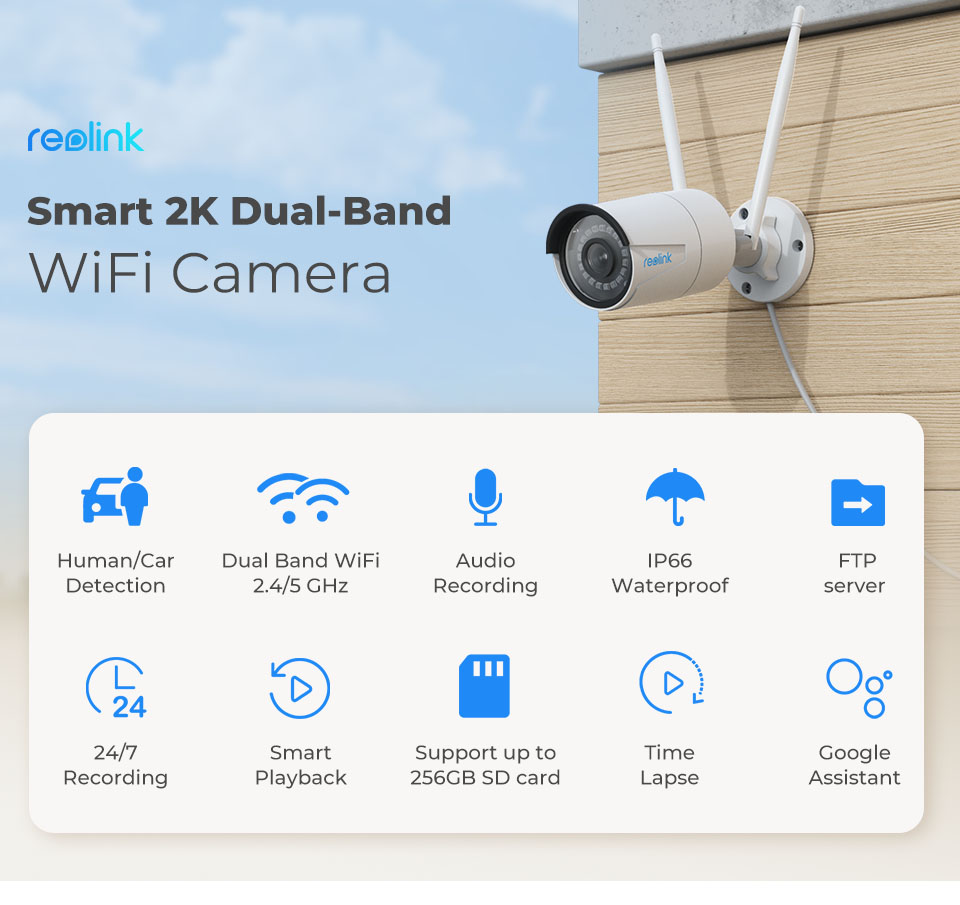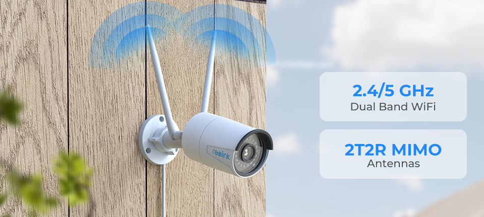 WiFi камеры Reolink — первые в мире камеры видеонаблюдения с двухдиапазонным WiFi. ДвухдиапазонныйWiFi2,4/5 ГГци антенны 2T2R MIMO обеспечивают мощный сигнал для надежной работы сети.