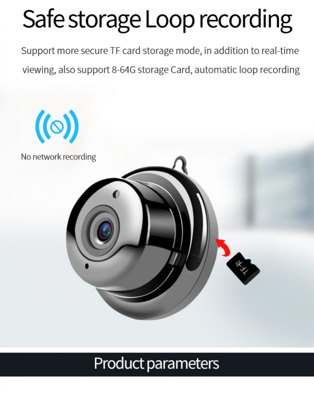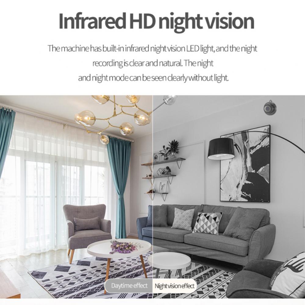 Инфракрасное ночное видение и сигнализация при обнаружении движения: Эта мини-камера поддерживает функцию ночной съемки, которая может записывать четкое видео даже в темноте и не излучает красный свет, поэтому съемка очень скрыта. А