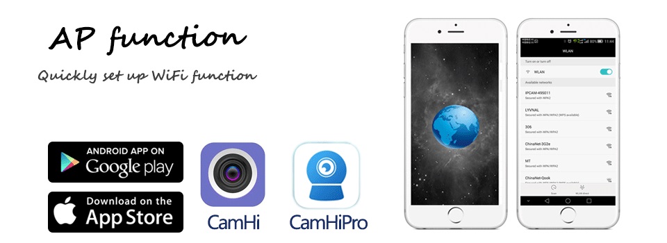 Если камера подключена к сетевому кабелю. Или вы один раз установили сигнал WiFi. Тогда Горячая точка IPCAM-XXX может исчезнуть. Если вы используете кнопку сброса камеры. Горячие точки появятся снова.