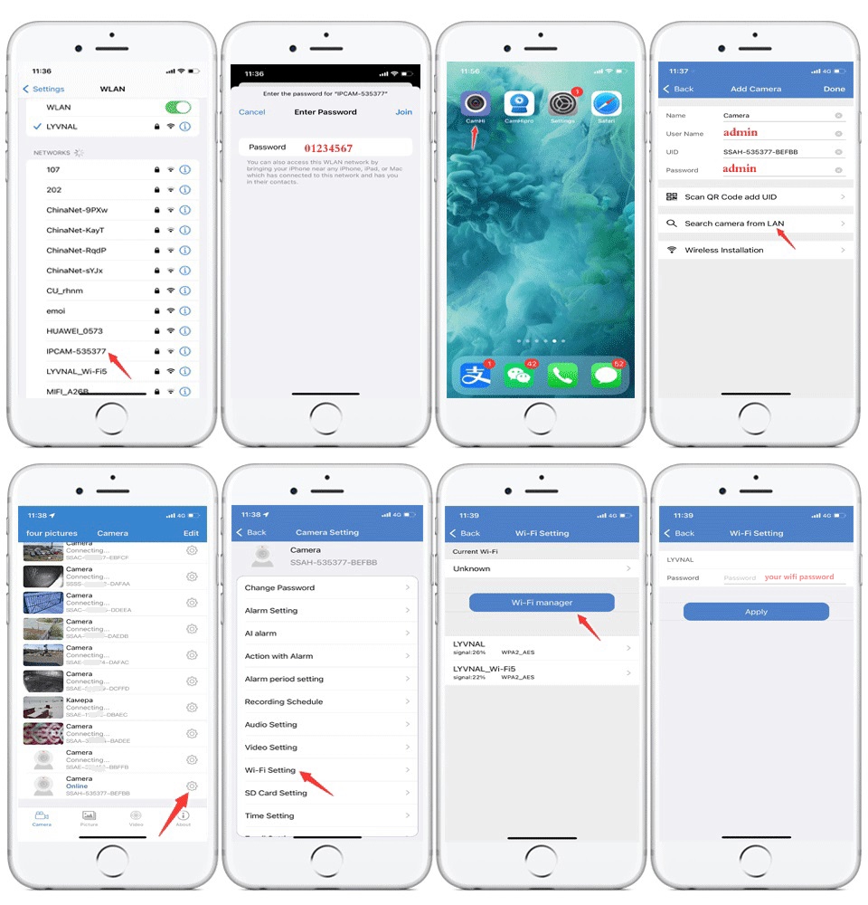 4: Выберите «Поиск камеры из локальной сети». Вы найдете UID камеры, добавите его, имя пользователя и пароль: admin.