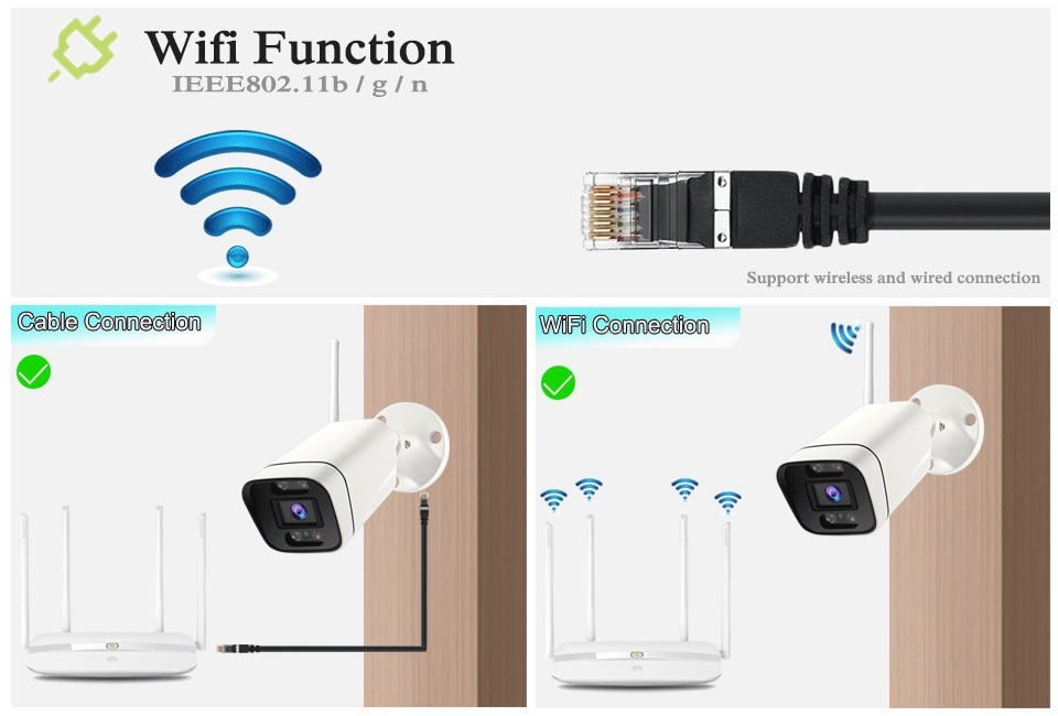 Камера WiFi может подключаться к сигналу WiFi. Он также может использовать сетевой кабель для прямого подключения к маршрутизатору.