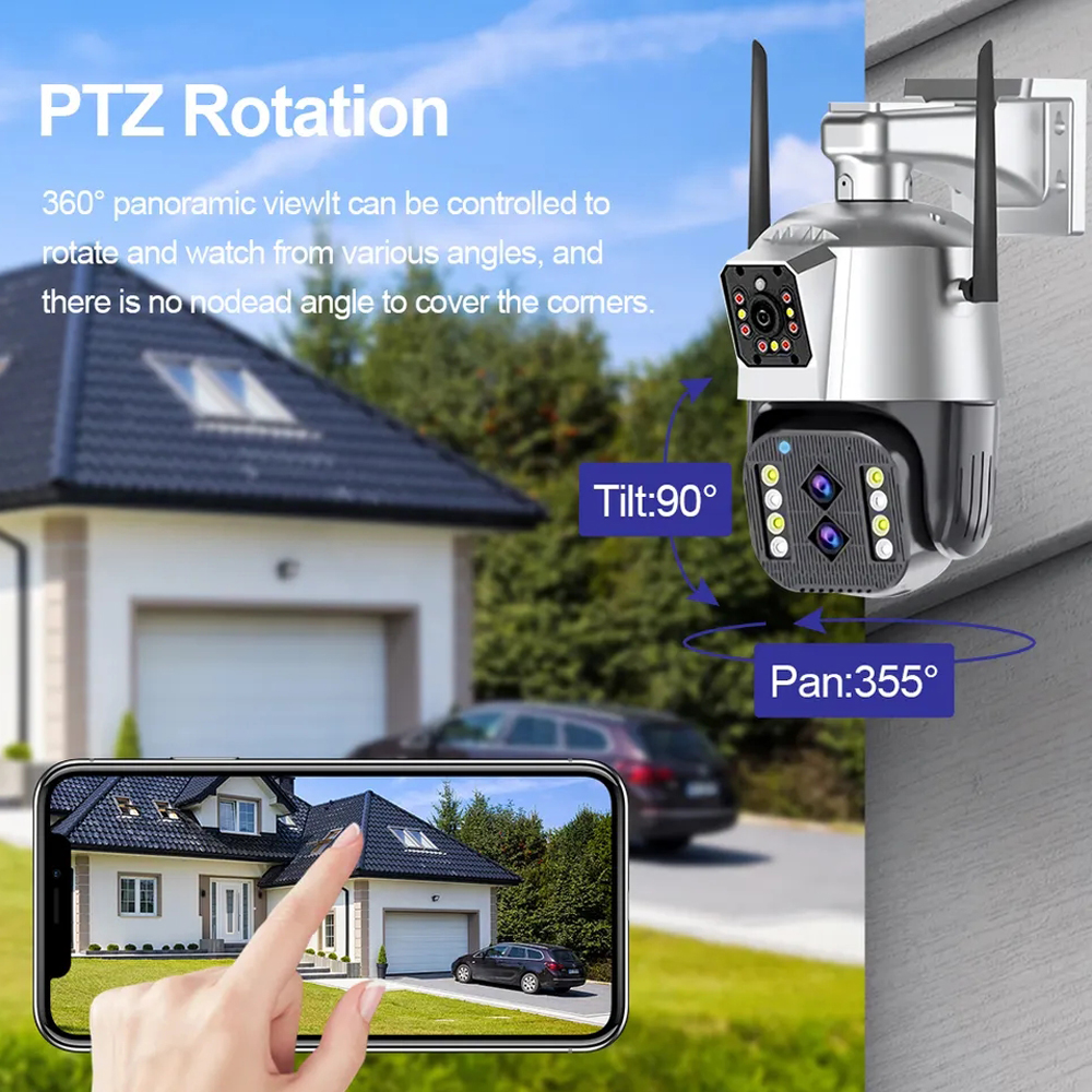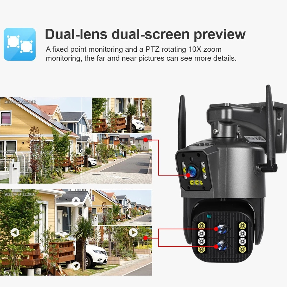 Домашняя безопасность WIFI IP-камера 8MP 10-кратный зум Автоматическое Отслеживание с двумя объективами Наружная Водонепроницаемая камера видеонаблюдения 4K Беспроводная камера