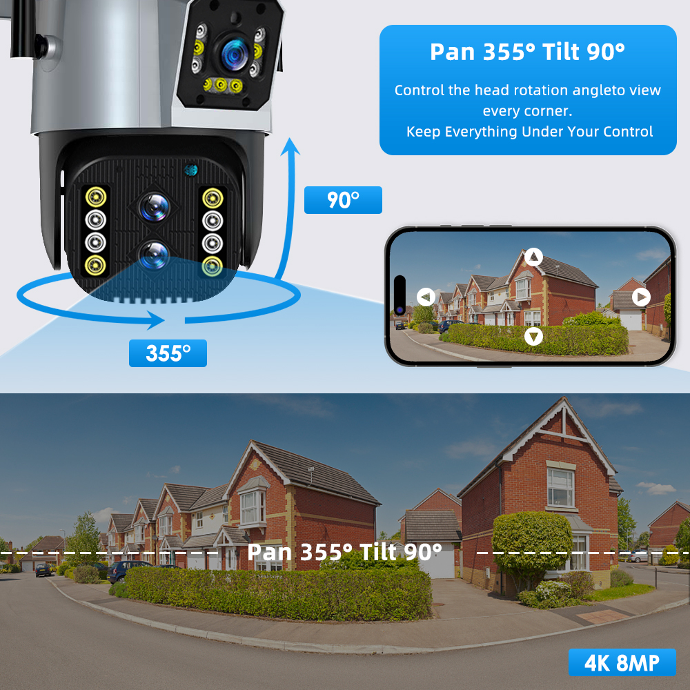 Камера 4K 8MP, что означает, что один объектив 4MP, поэтому двойной объектив 4MP + 4MP = 4K 8MP