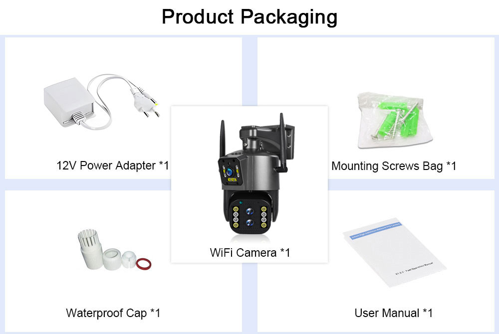 Питание от адаптера DC12V позволяет подключить камеру к сети Wi-Fi. Вы можете настроить Wi-Fi-соединение камеры или поиск по локальной сети с помощью сетевого кабеля, подключенного к маршрутизатору, работать только с Wi-Fi 2,4G (не поддерживает 5G).