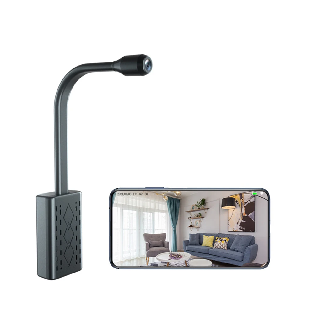 2. Складной кабель объектива поддерживает угол обзора 360 °: поскольку складной кабель объектива позволяет регулировать любой угол для управления вашим домом, вы можете скрыть основной блок на задней панели любого объекта и фильтровать только маленькую камеру. Простота установки и использования.