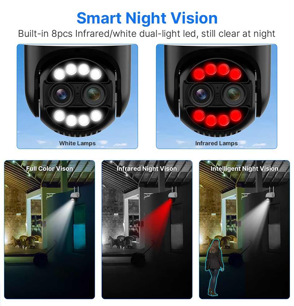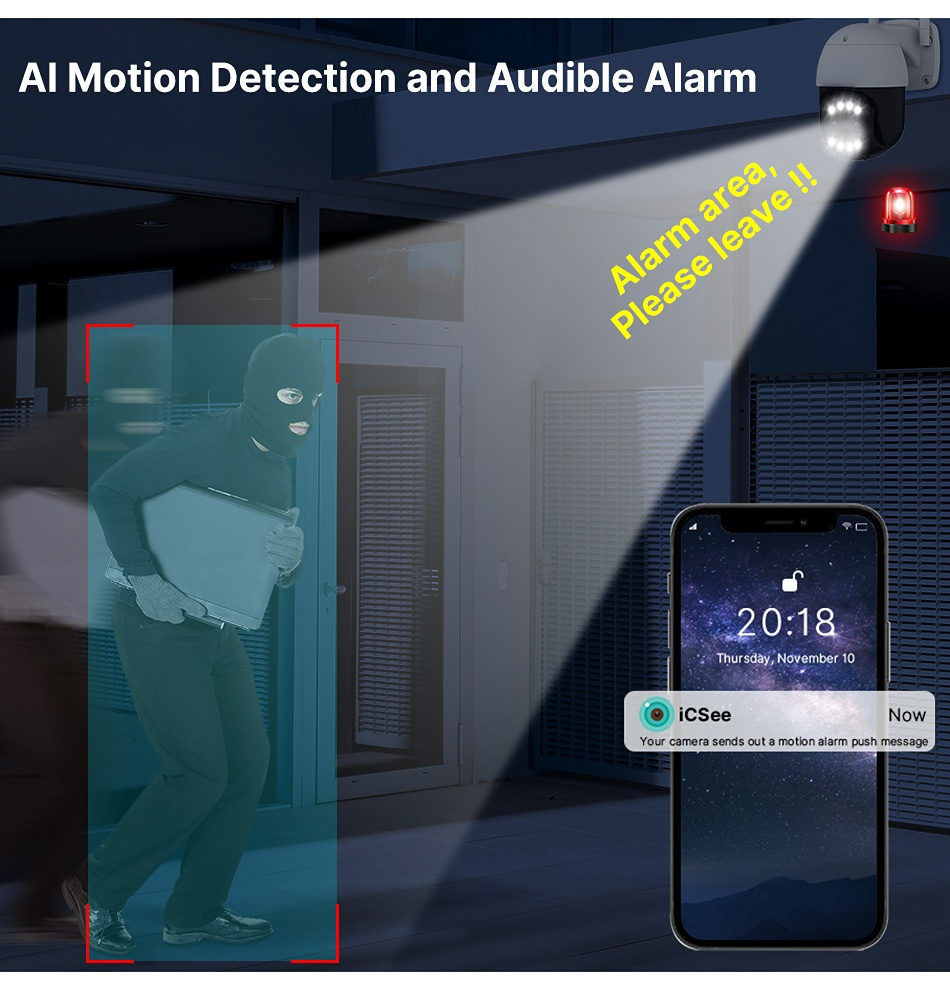 When 4K (2K) security camera detection human motion at night, it will light on white light and push the notification